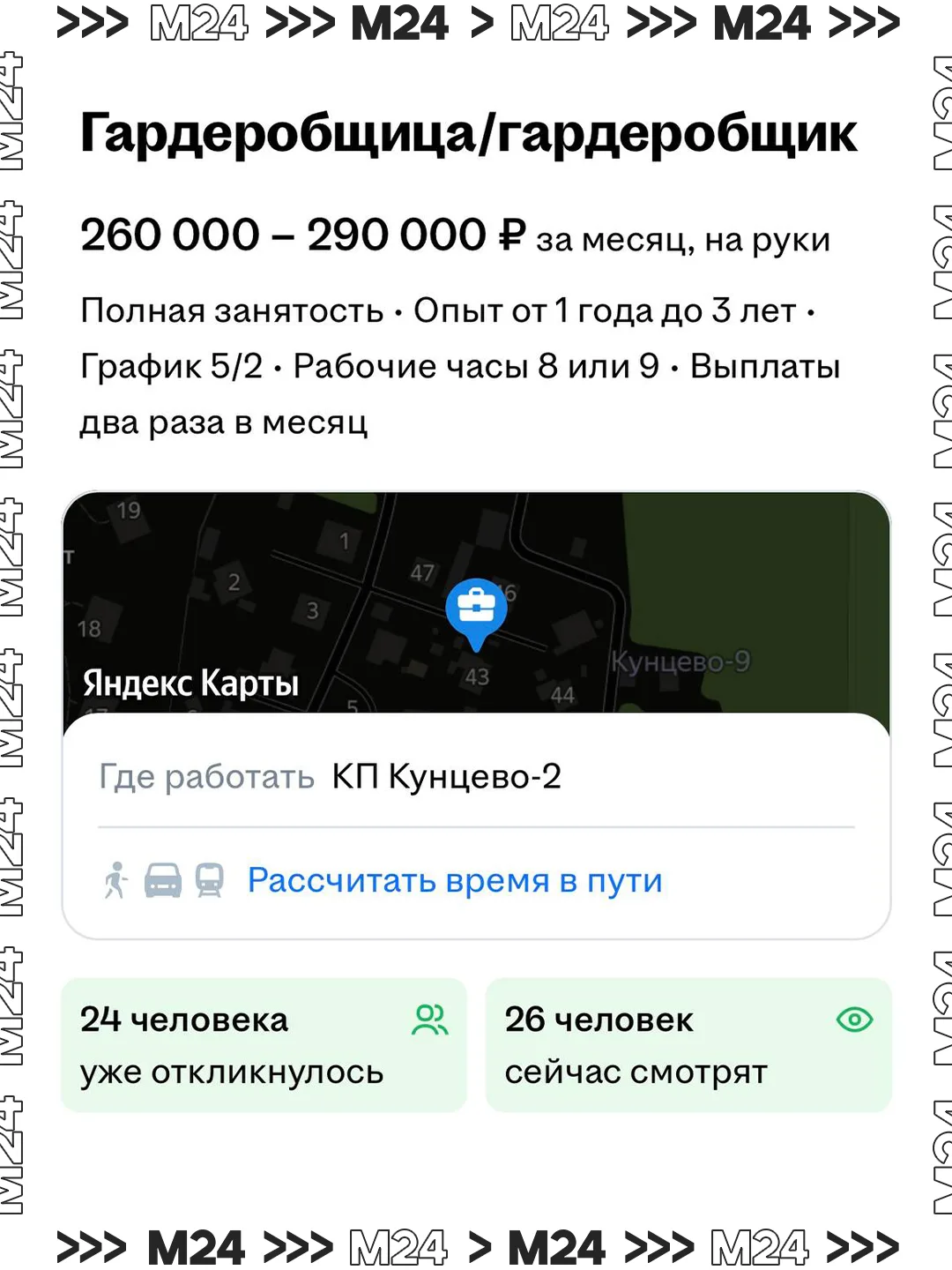 Сумма намекает, что вакансия, возможно, в премиальном заведении. В требованиях — опыт, аккуратность и ответственное отношение к работе.