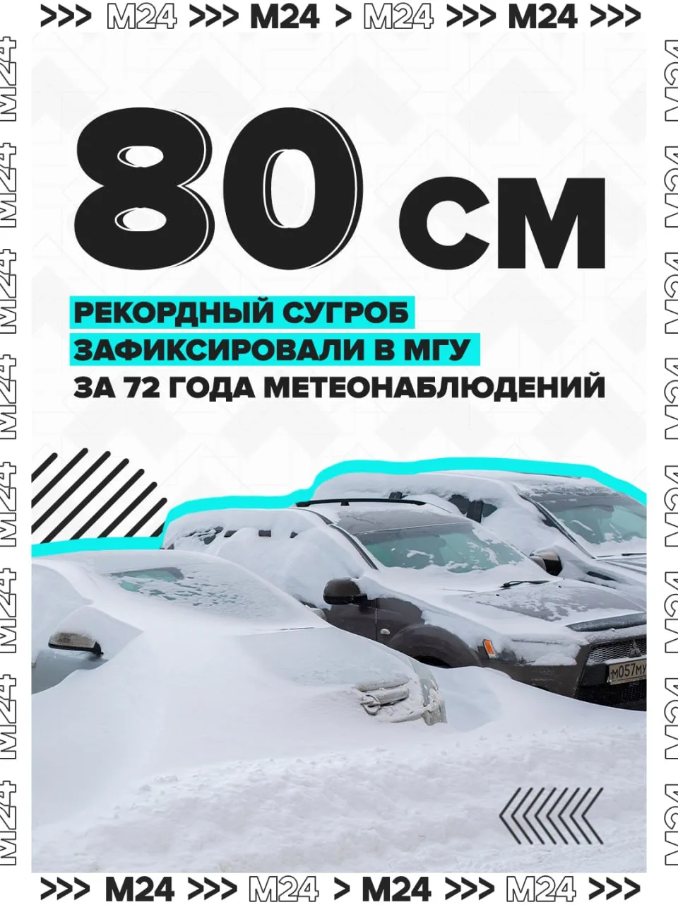 В столице выпало почти в два раза больше осадков, чем положено по климатической норме. На метеостанции ВДНХ высота сугробов достигла 70 см. Для сравнения: норма — около 38 см.