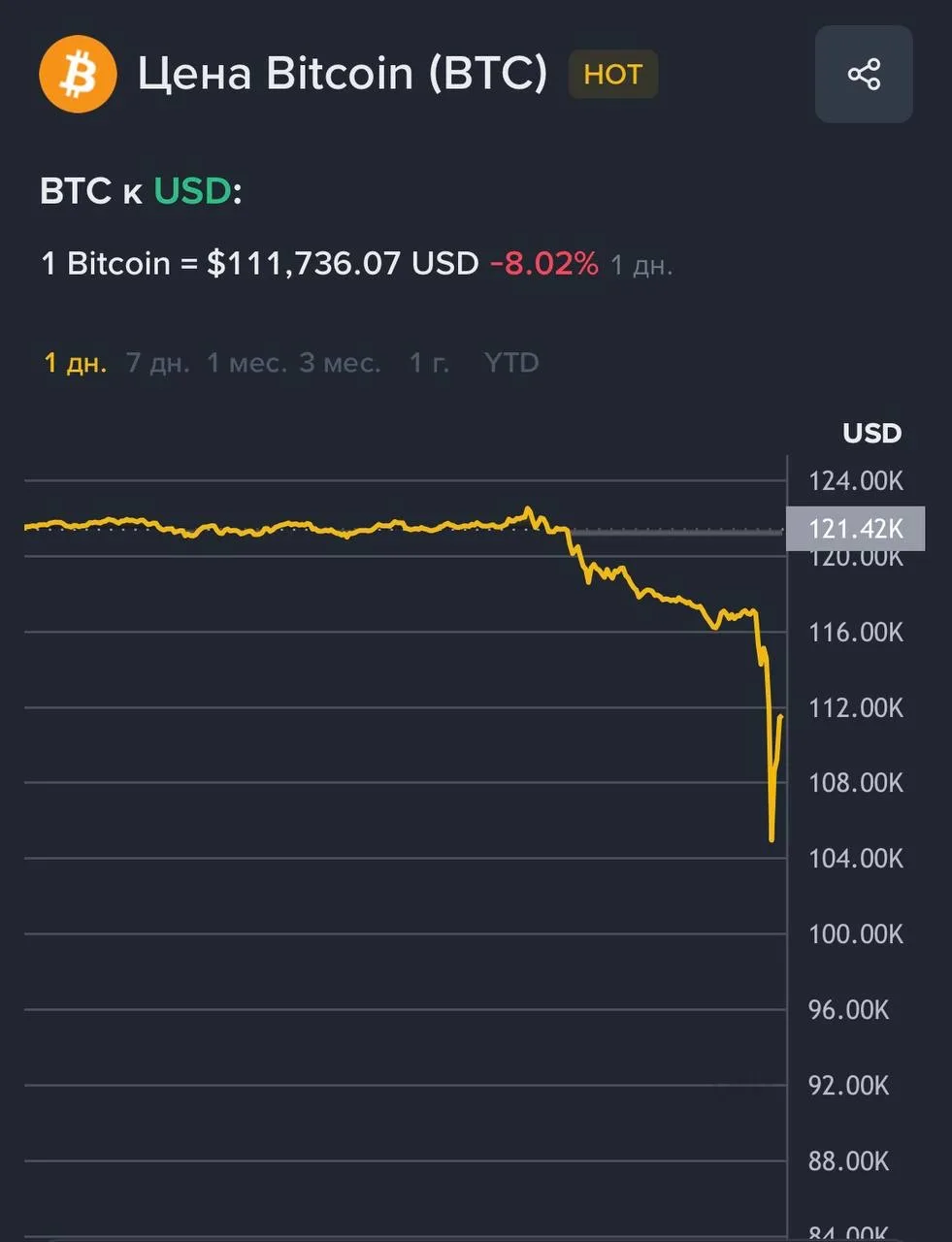 😮 $88 000 000 за полчаса! Чья-то ставка на обвал Биткоина оказалась пророческой