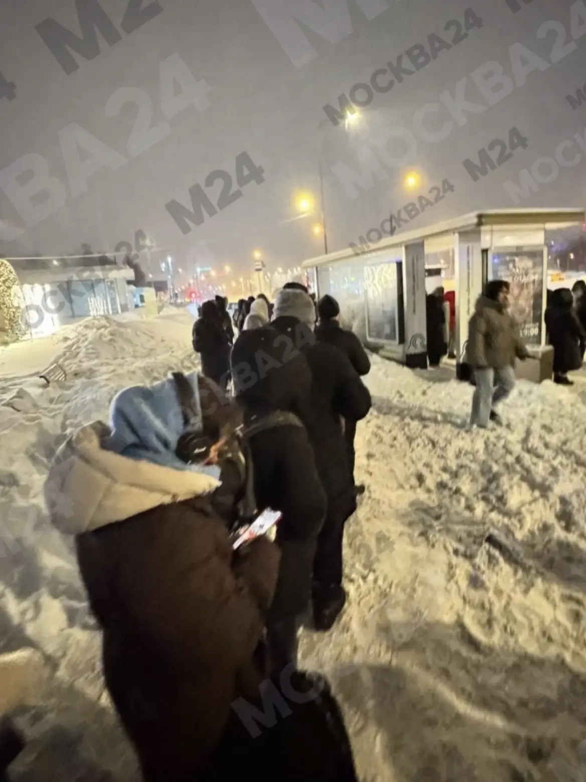 Жители ЖК «Белая Дача парк» в городе Котельники чистят мост, на котором из-за снегопада застряли фуры.