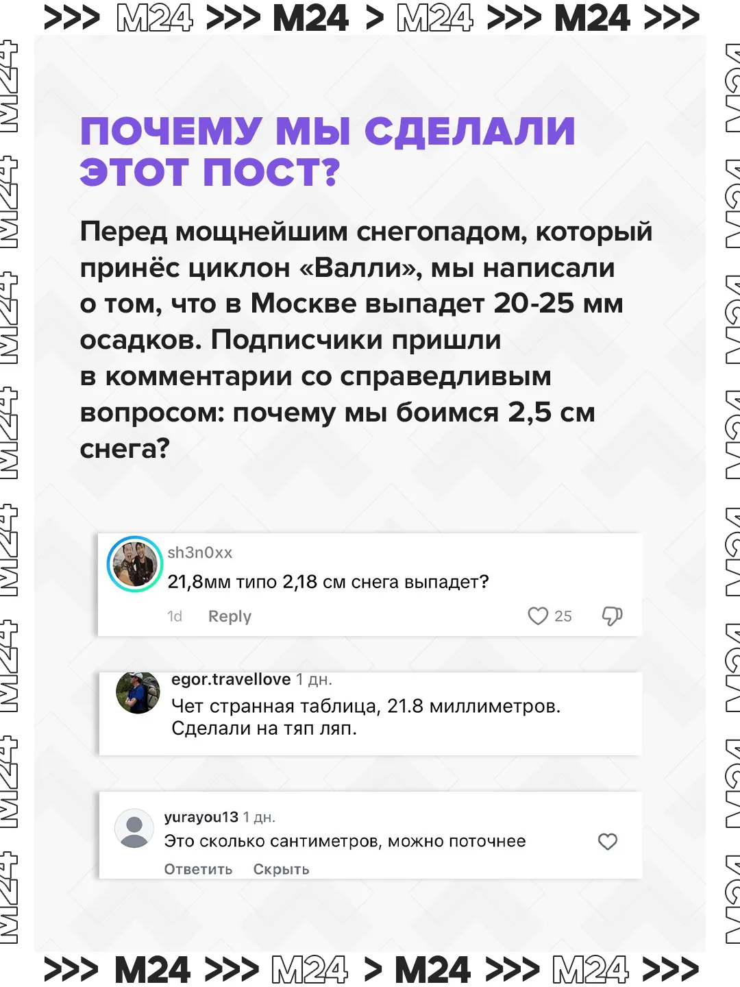 Когда вы узнали, что циклон «Валли» принесёт в Москву 21 миллиметр осадков, то стали писать: вы имели в виду сантиметры?