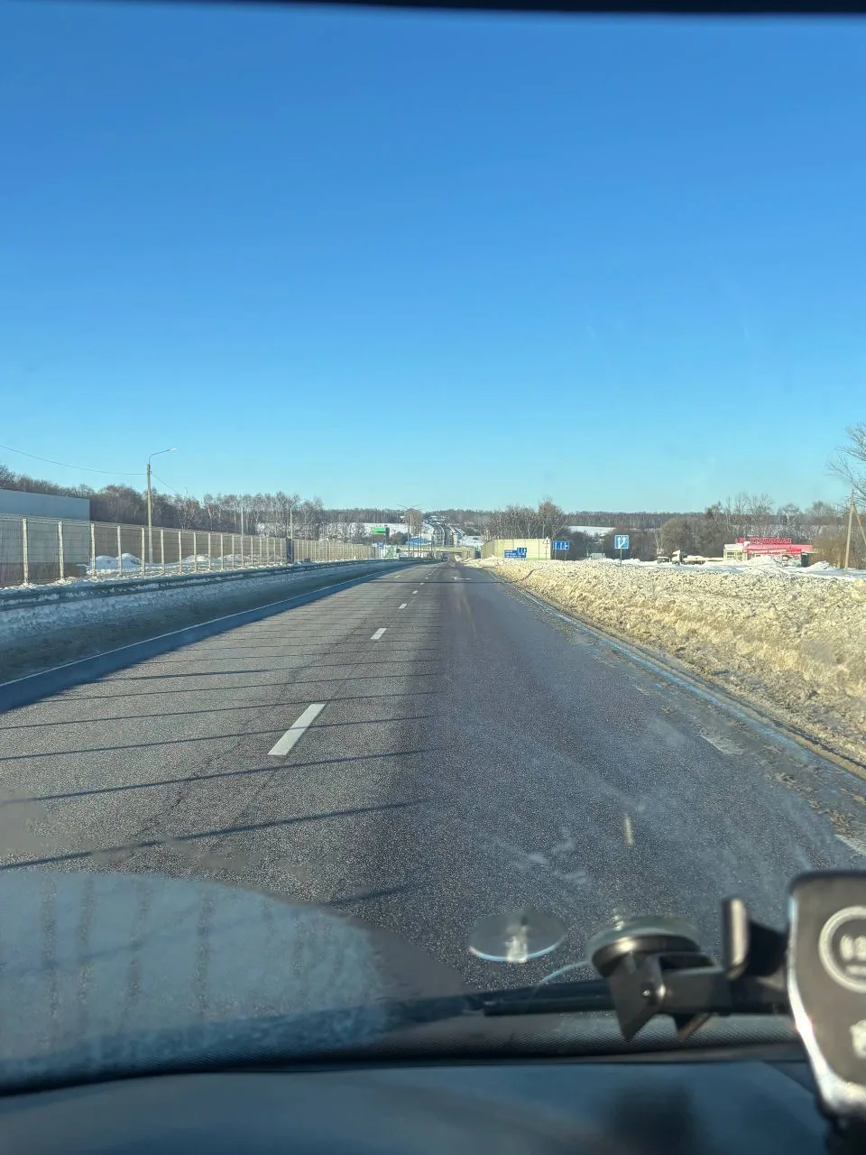 138 км, движение плотное, машин очень много. Дорога почищена, но скользко.