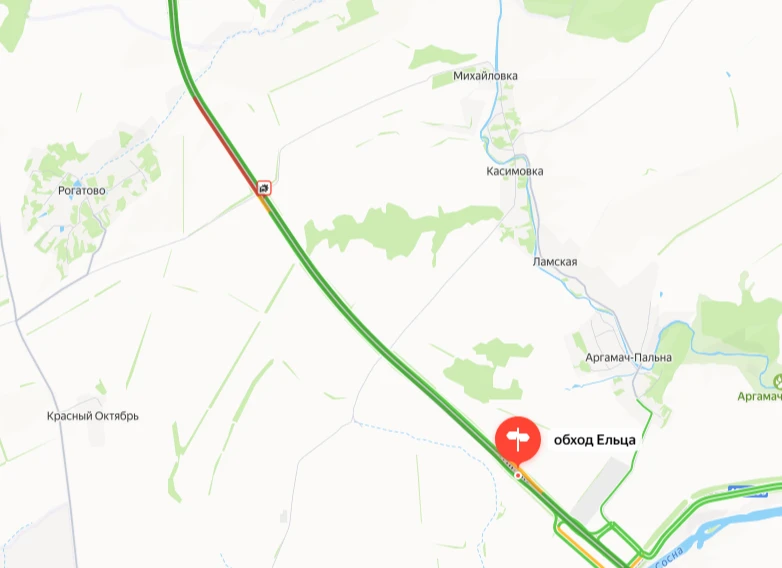 📌 Пробка на обходе Ельца. Направление в сторону юга.
