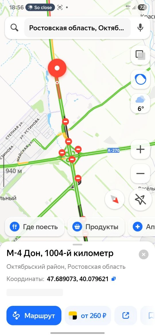 ▶️ Маршрут 2 (через Шахты и Новочеркасск): Съезд на 938 км _ Р-260 _ х. Волченский П. Углерод T Гуково Зверево - Новошахтинск развязка на 1000 км — Шахты Новочеркасск