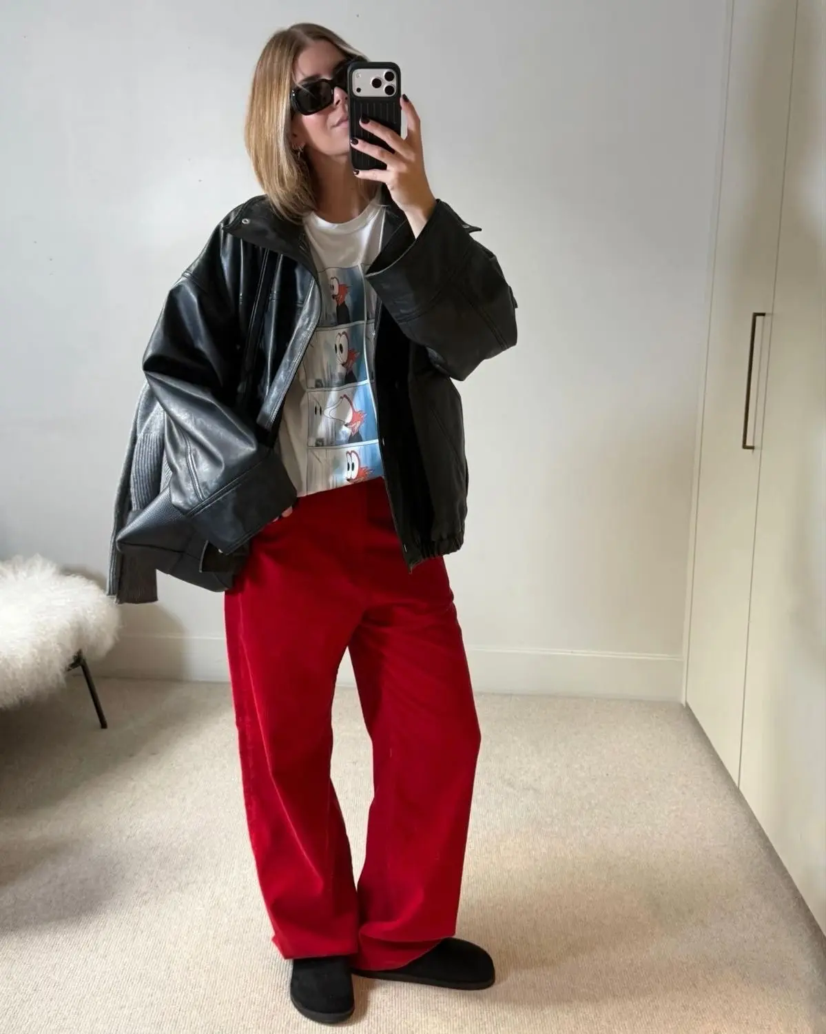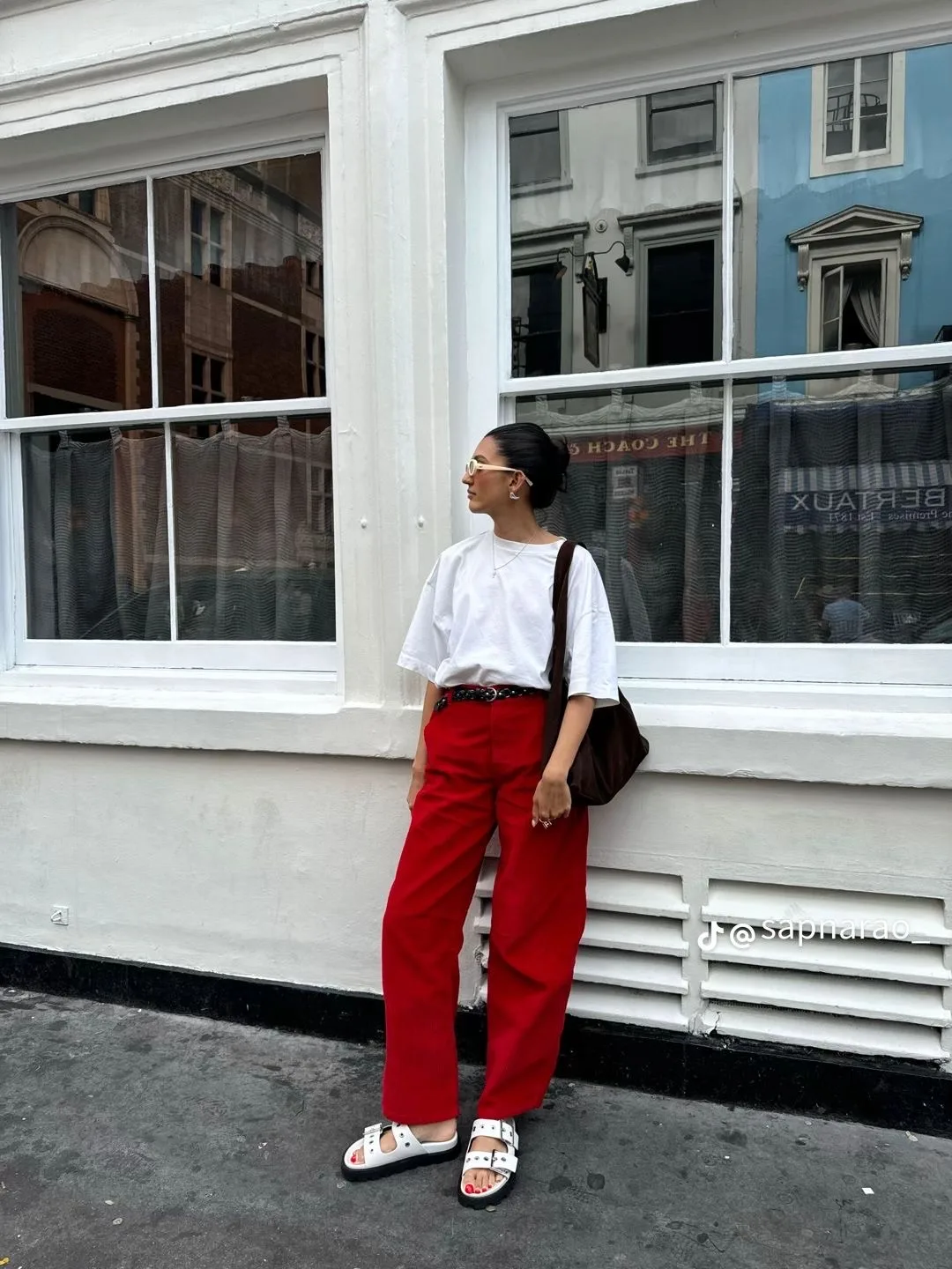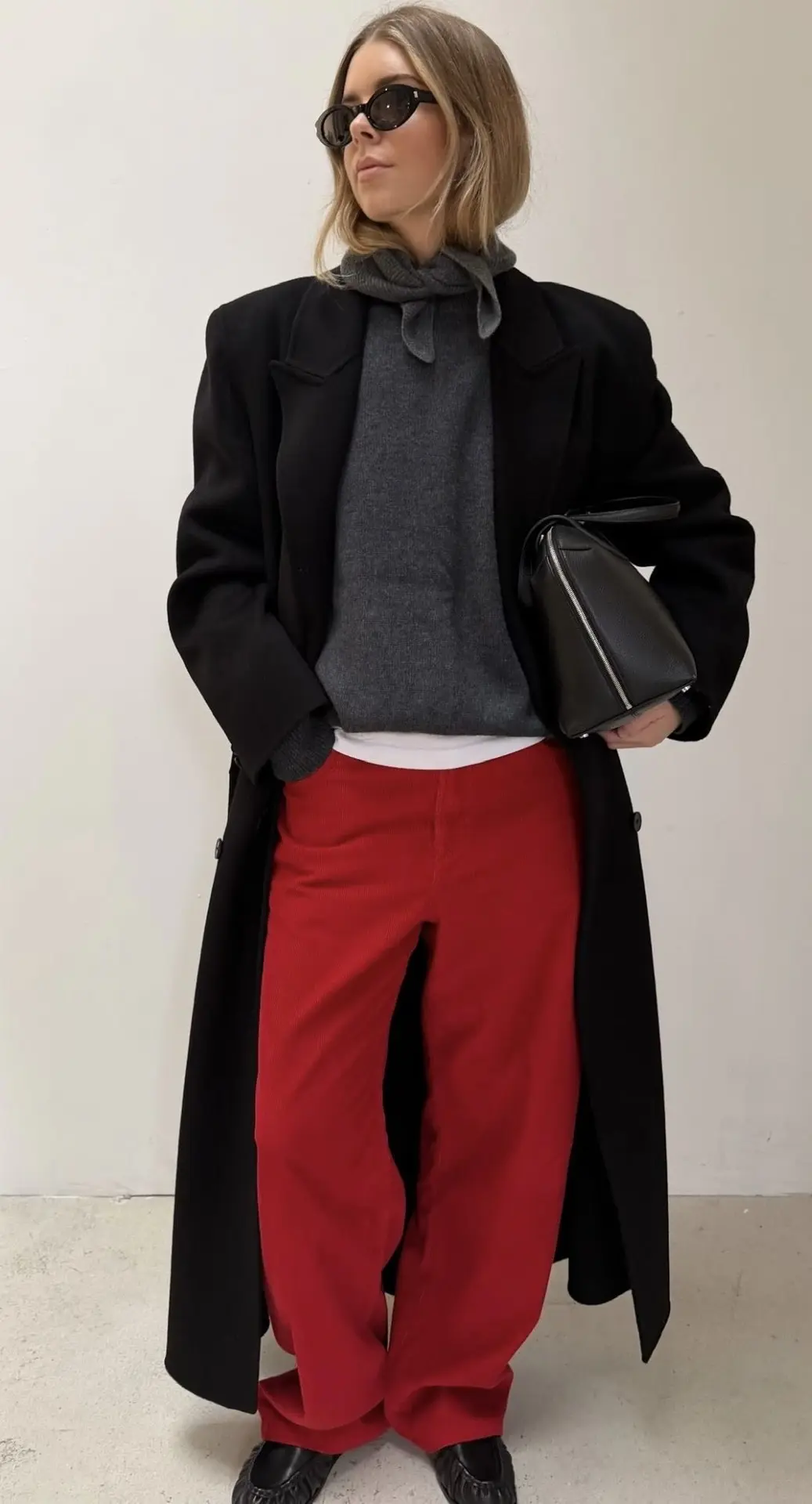 Сегодня предлагаю вам вдохновиться подборкой аутфитов с красными джинсами. Обратите внимание, что часто они становятся центральным акцентом, вокруг которого строится весь образ.