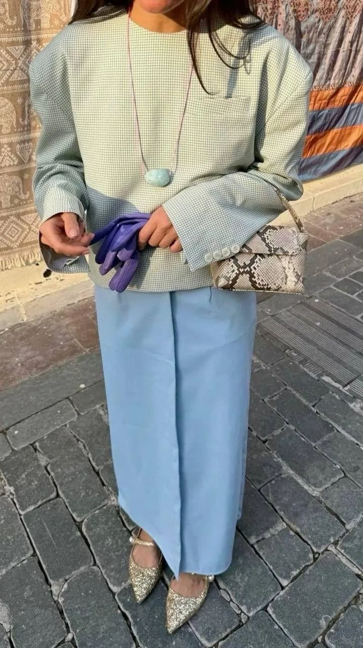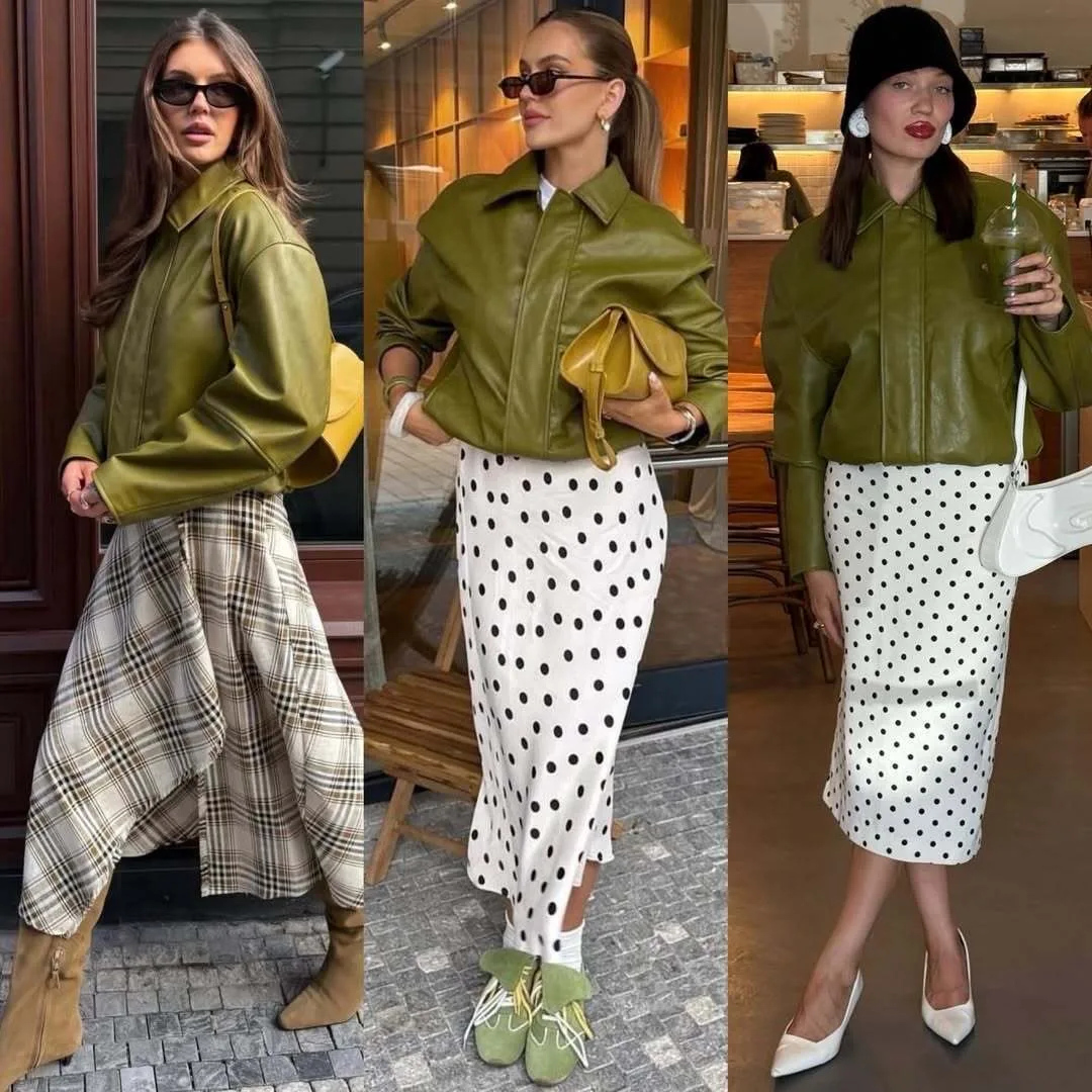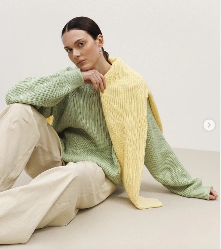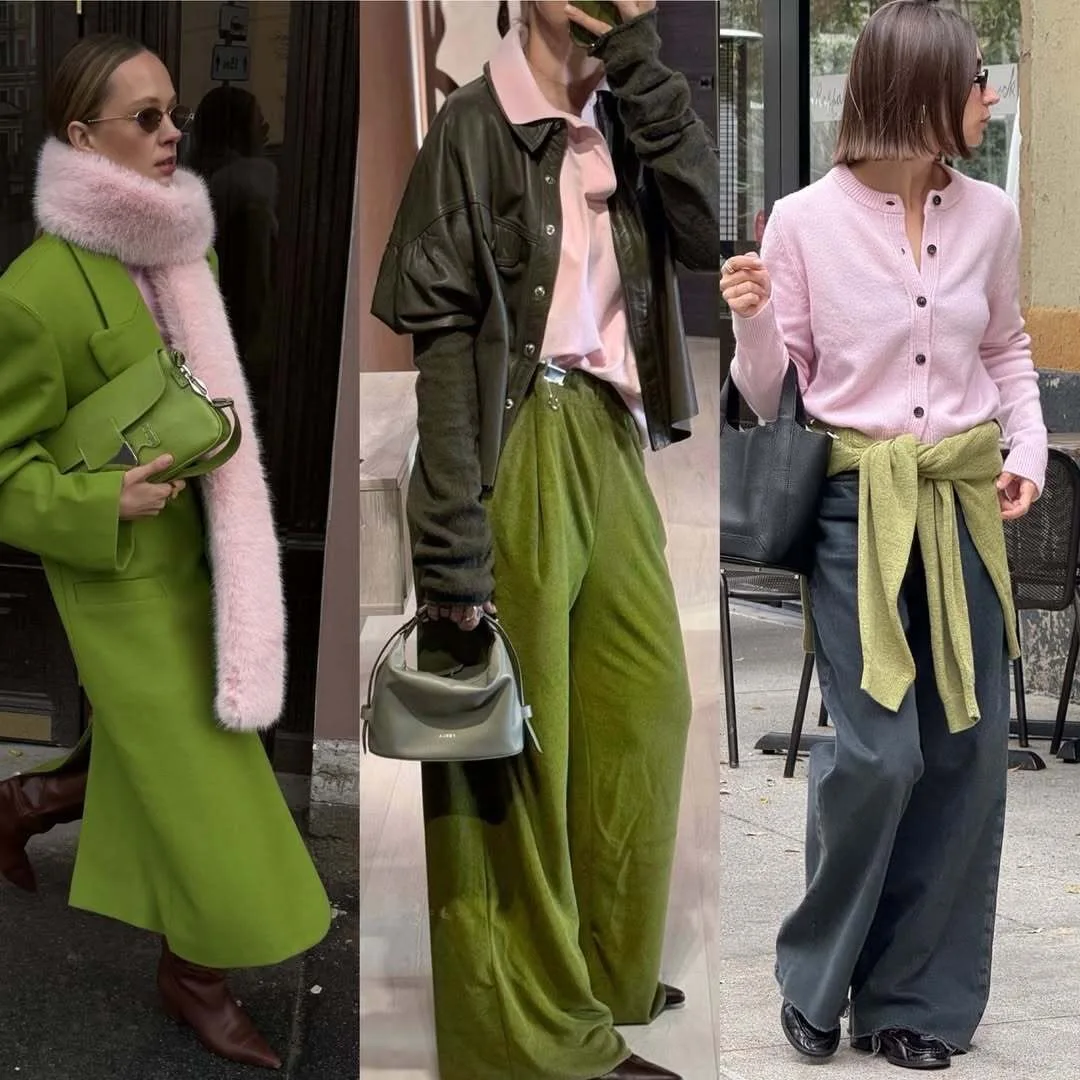 Фисташковый — тот самый оттенок, который неожиданно стал главным героем этого сезона. Он не кричащий, не банальный и при этом очень освежает образ, делая его мягче и визуально «дороже».
