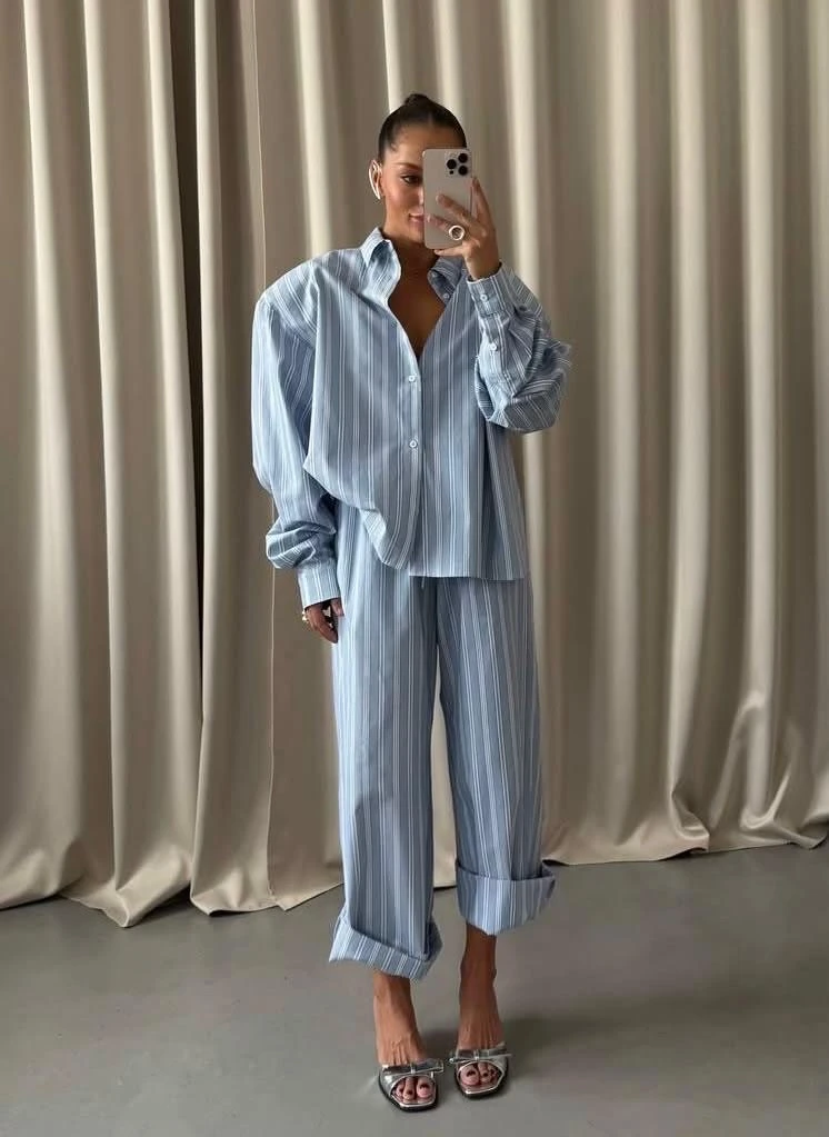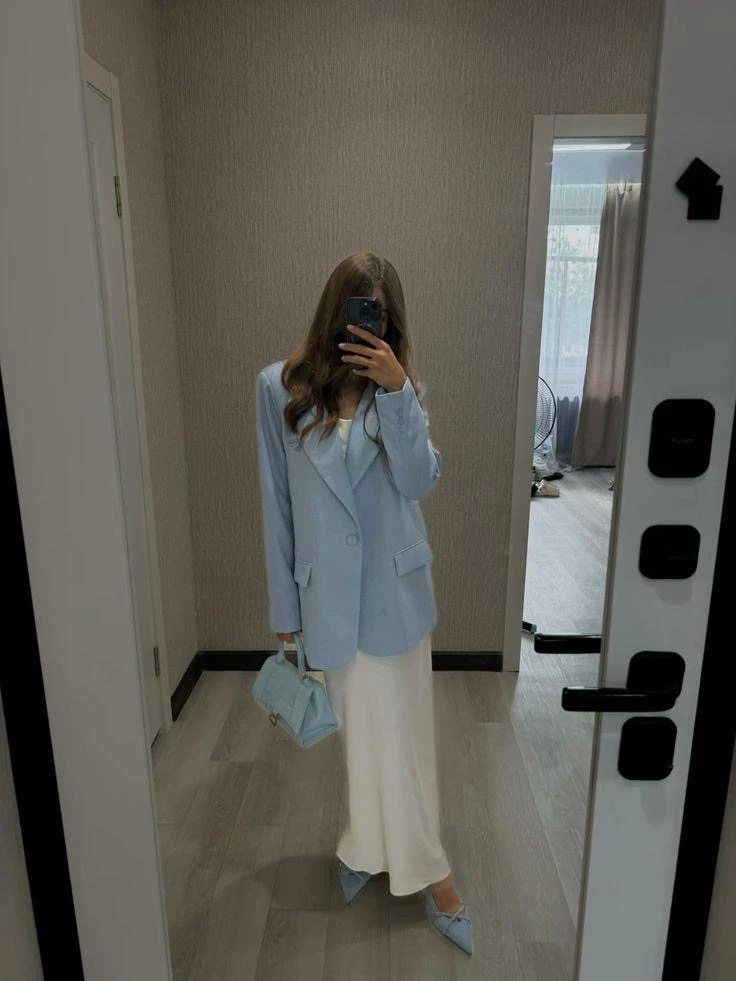 Нежное сочетание, которое всегда выглядит свежо и элегантно. Идеально для свиданий и прогулок.