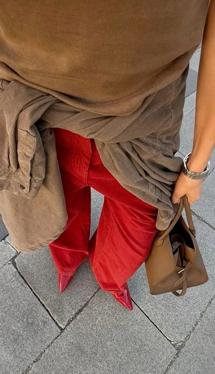 Вы заметили, как часто в последнее время мелькают красные джинсы? Эта, казалось бы, обычная вещь, стремительно набирает популярность благодаря стильным образам блогеров и инфлюенсеров. Мне очень нравится тренд, буду обязательно носить.