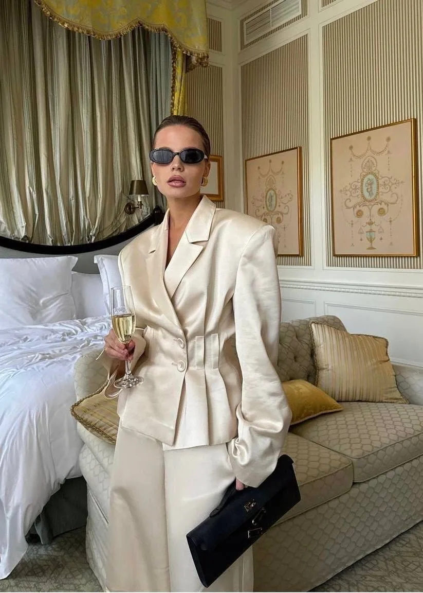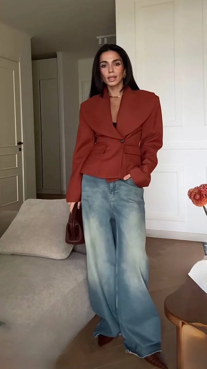 Жакет не должен быть слишком приталенным или, наоборот, бесформенным — актуальнее мягкая структура и ощущение свободы.