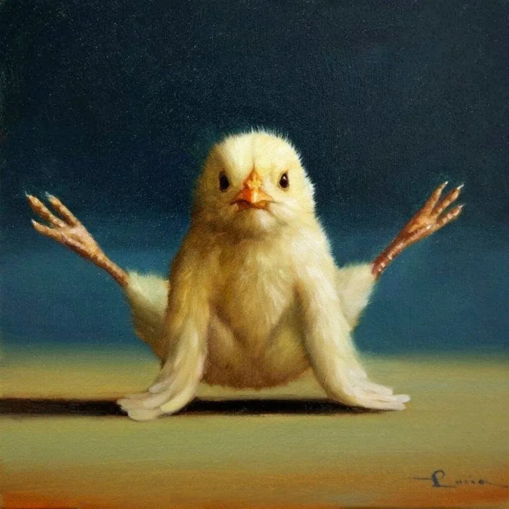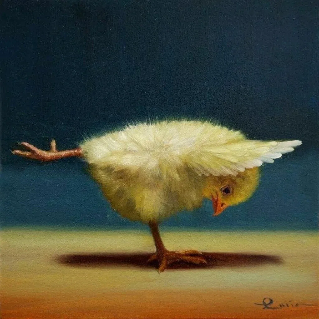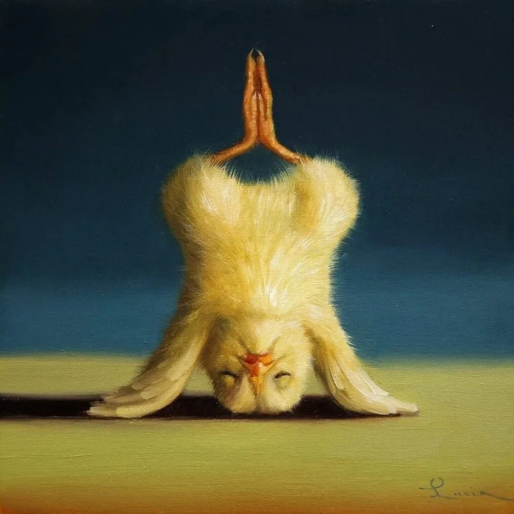 Художница Лючия Хеффернан даёт вам такую возможность. В серии картин «Цыплята-йоги» автор представляет птенцов, растягивающихся в различных позах древних индийских практик йоги.