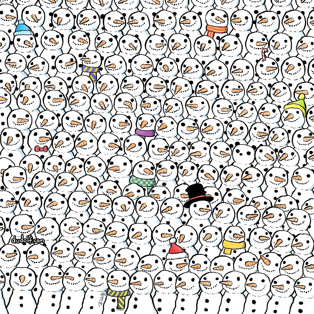 ⛄️🐼⛄️ Если сможете отыскать 1 панду среди 169 снеговиков, вы в 100 раз внимательнее меня