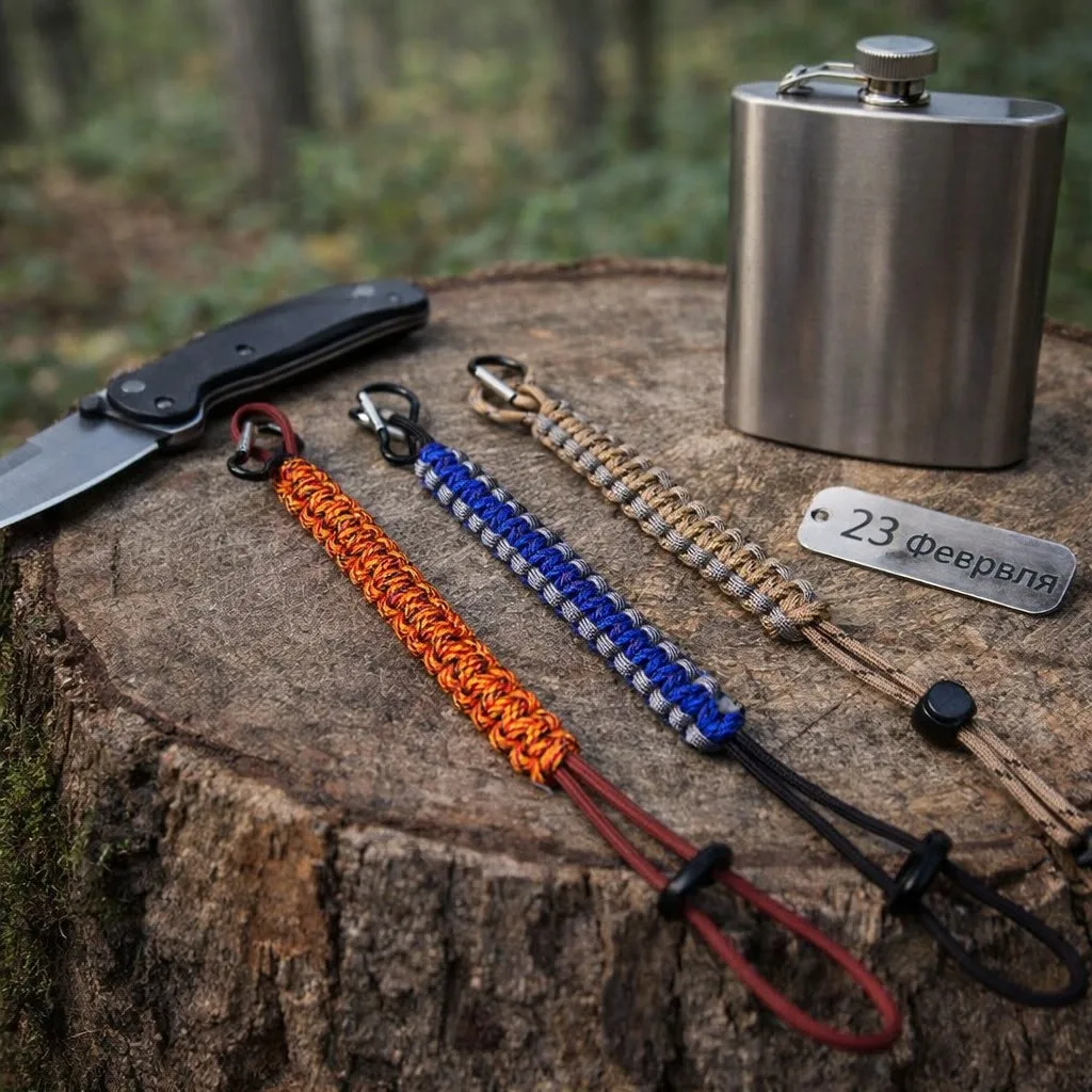 Предлагаю сделать стильные, брутальные и очень душевные подарки - темляки. Это не просто шнурок на ключи или нож, это настоящий мужской аксессуар с характером. Да и сплести его можно именно в тех цветах, которые носит ваш защитник.