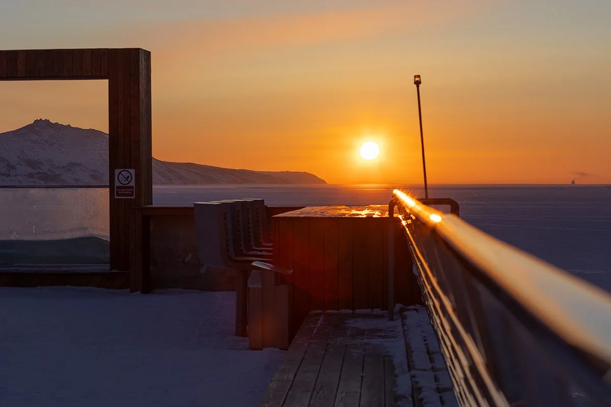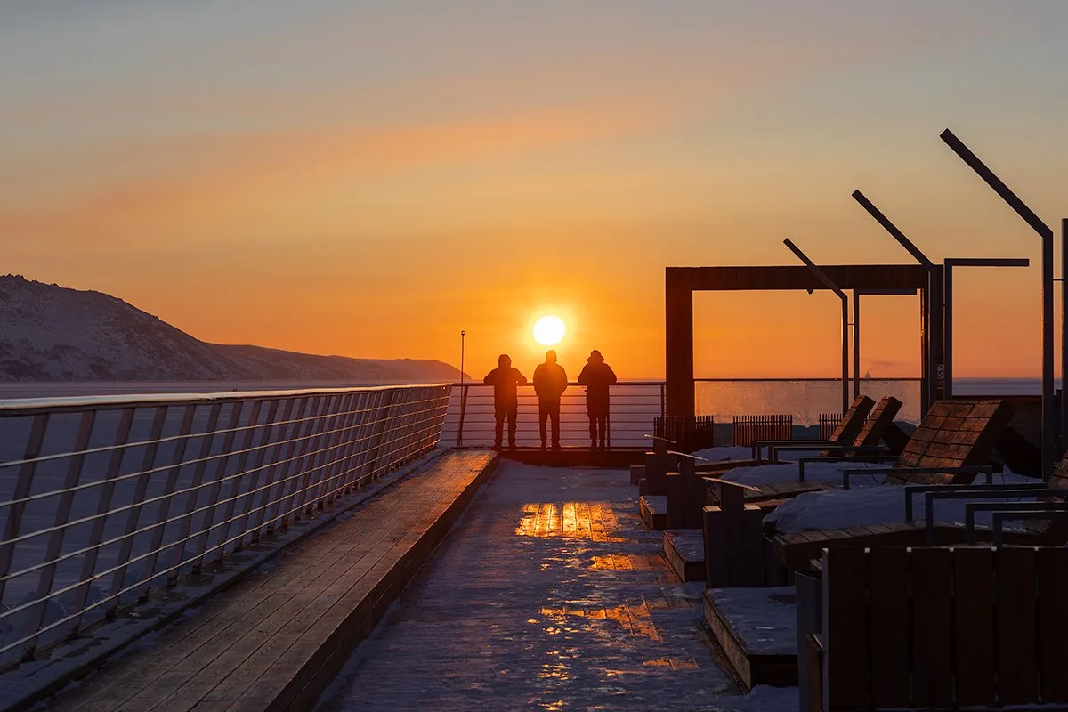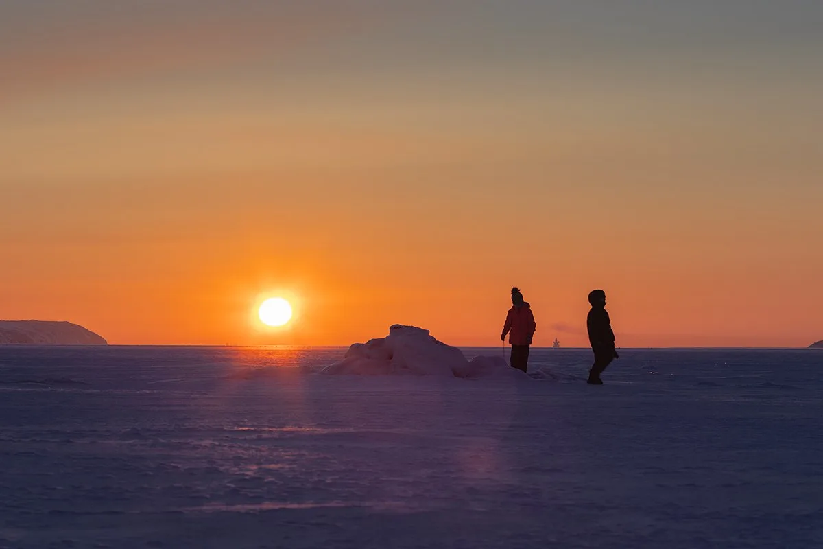 Небо наливается красками густо, не торопясь, будто знает: мы ждём. Идёшь по льду бухты Нагаева, а вокруг — тишина, морозный воздух и этот закат. Сегодня он розовый с золотом, завтра — фиолетовый в разлив, послезавтра — багряный, уходящий за сопки.