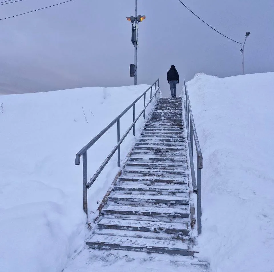 Речная 59 беспокоит. Куда делись все дворники? На Пионерном ни тротуаров, ни дорог, так ещё и все лестницы заметены ! На фото - арка. Такая же ситуация с лестницами во дворе!!!