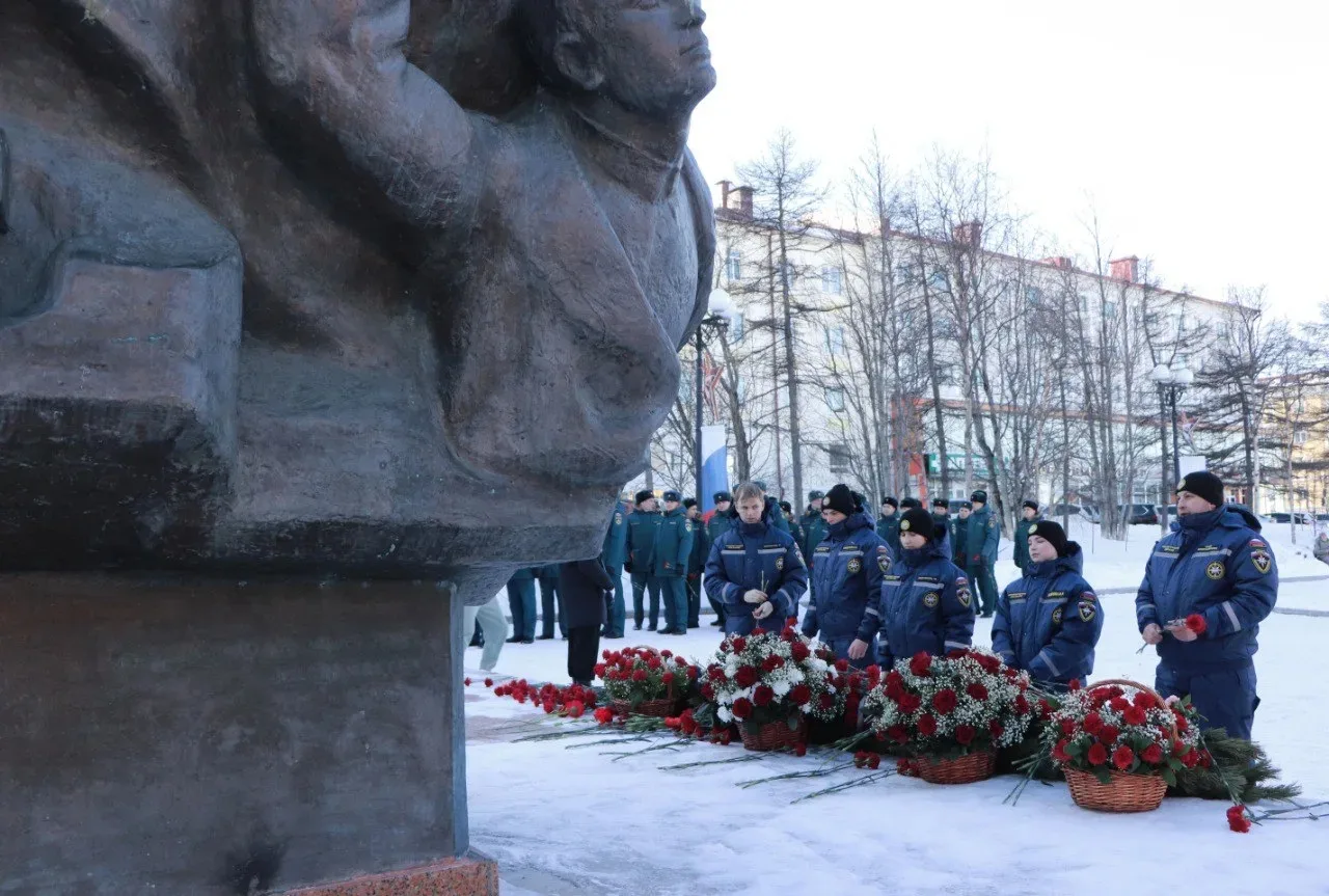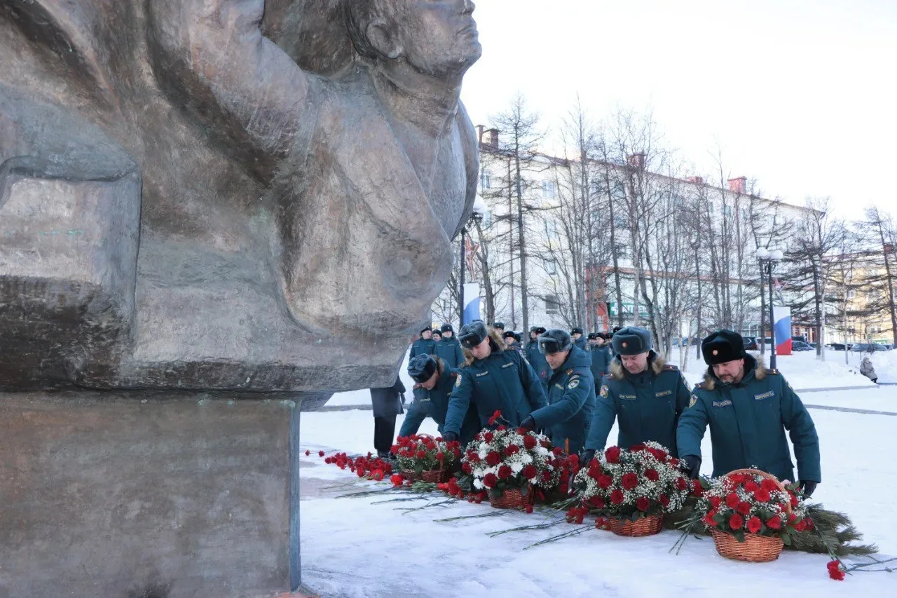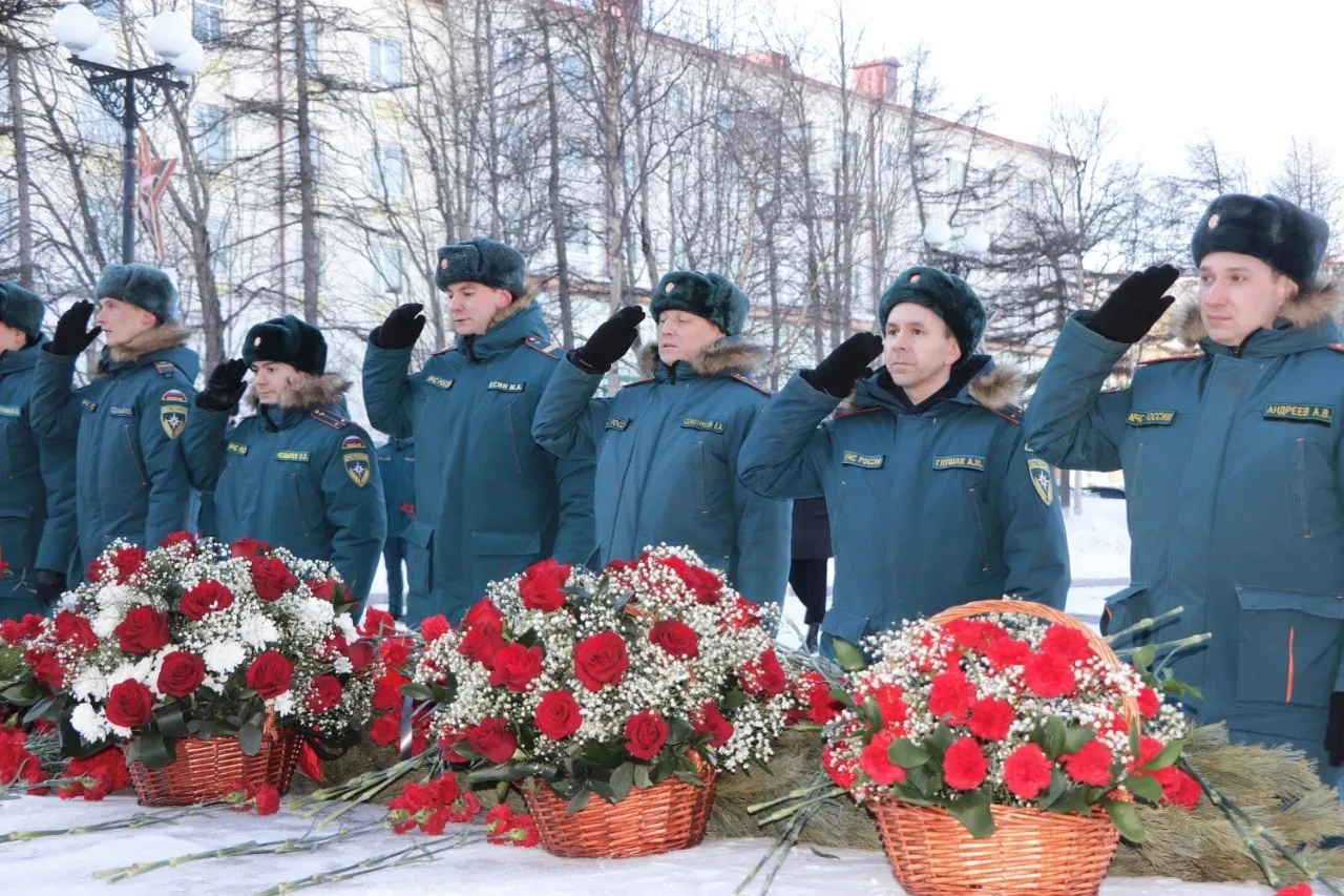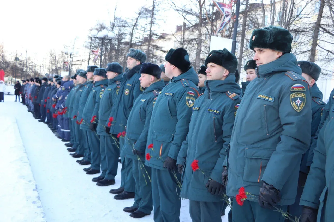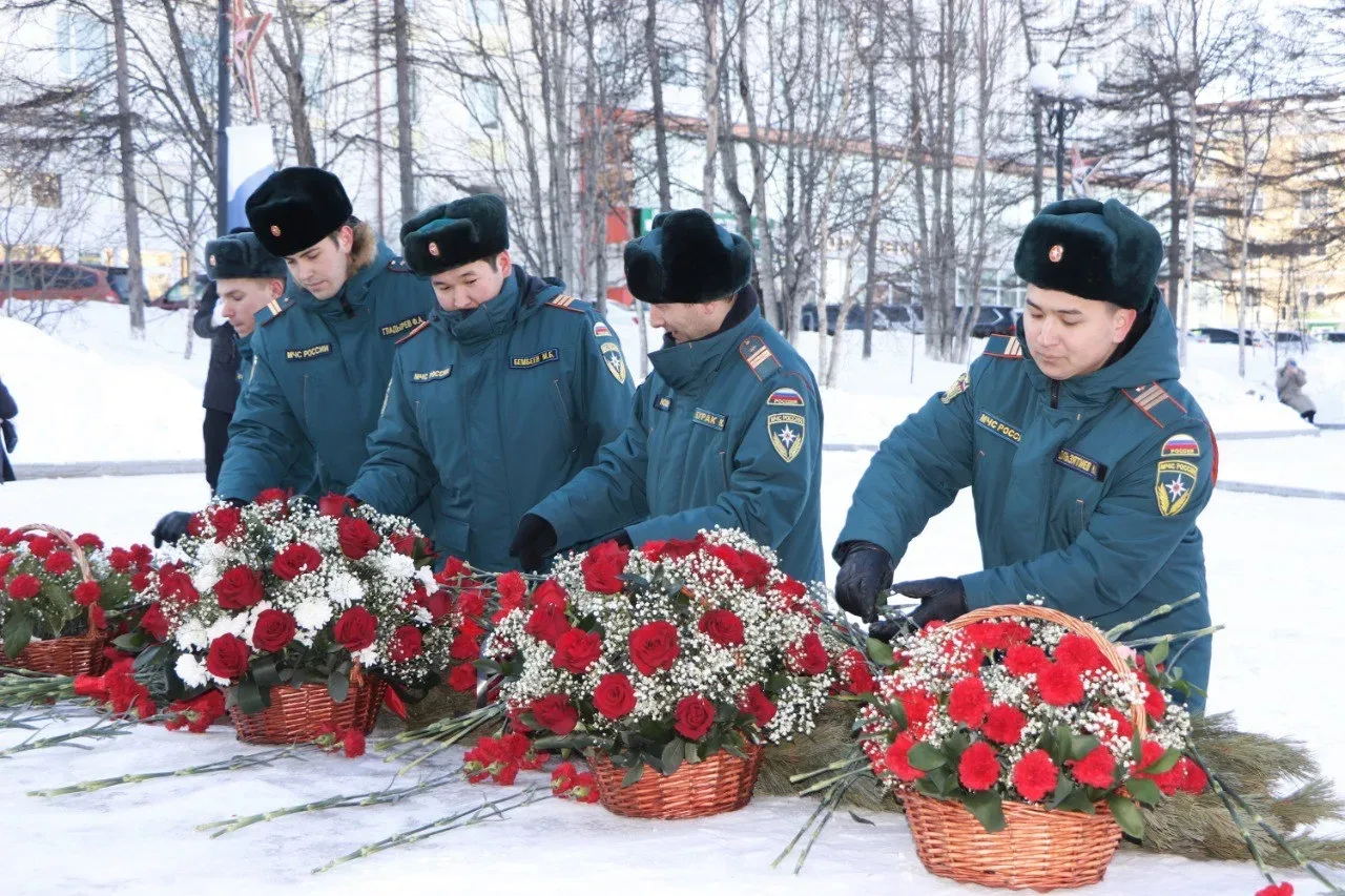 В преддверии Дня защитника Отечества сотрудники МЧС России возложили цветы к мемориалу «Узел памяти».