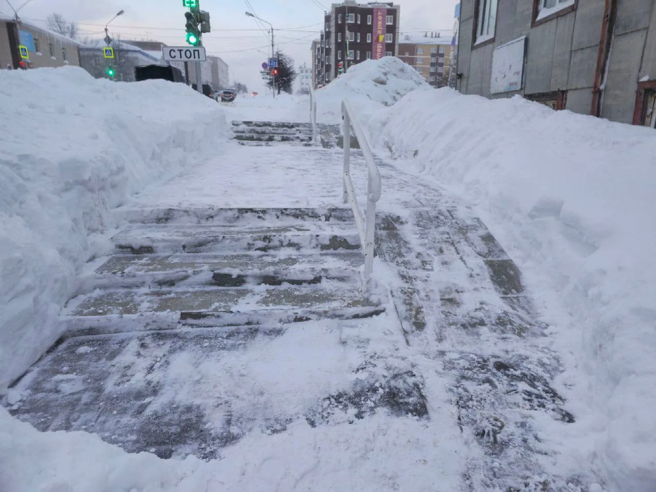 Тротуары и пешеходные переходы чистили на перекрёстке улиц Пролетарской — Якутской — Ягодной, обеспечили проезд к дому на Пролетарской, 36.