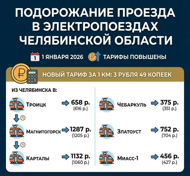 🚃 В Челябинской области выросли тарифы на пригородные поезда
