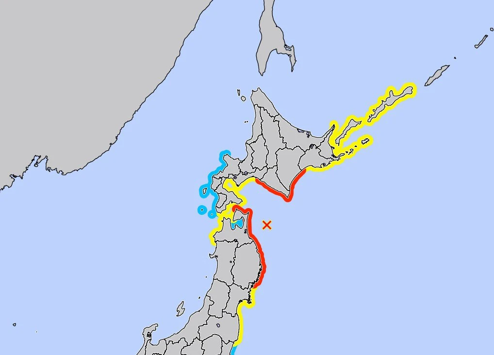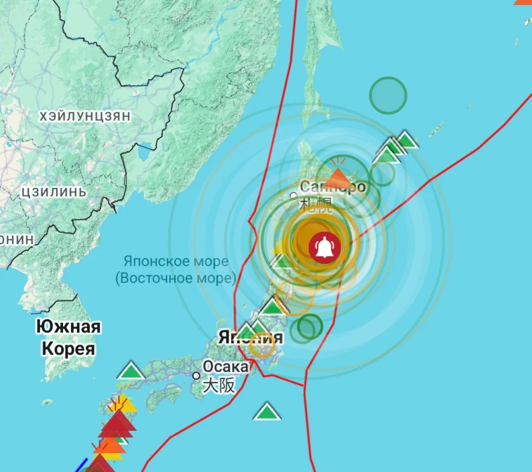 🌊Есть угроза цунами, до 4 метров на восточном побережье Японии, до 1 метра на Южных Курилах. 🔔