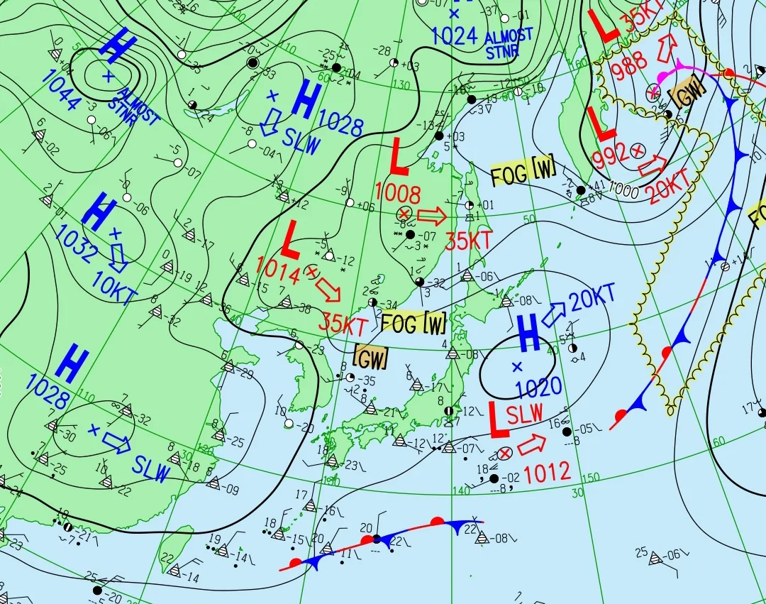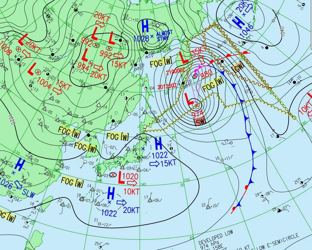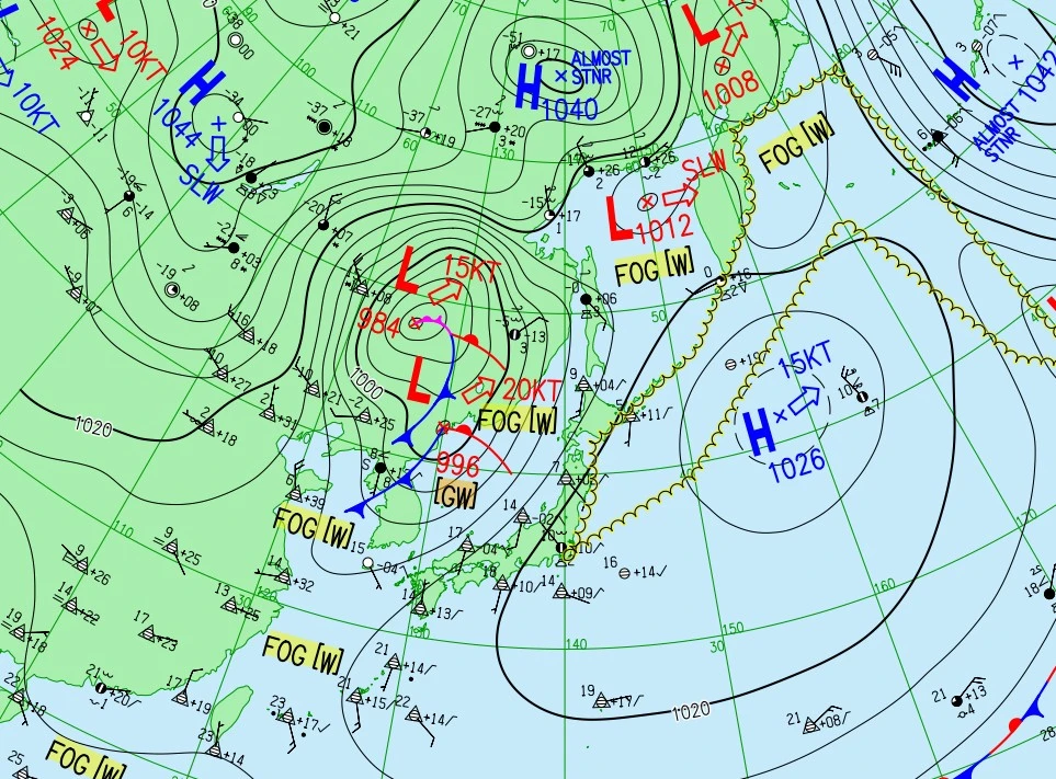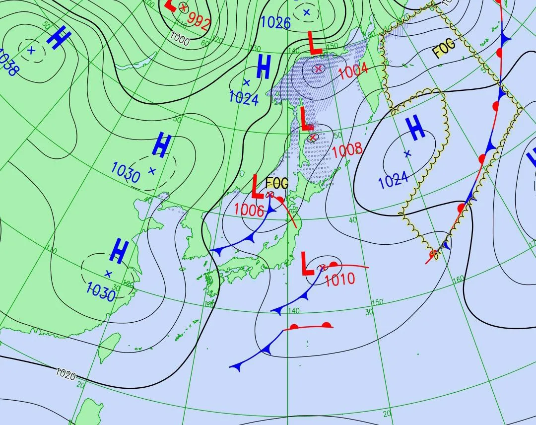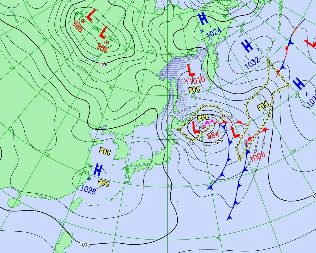 Южнее Владивостока проходит, только что сформированный волновой циклон. По западным районам, от Владивостока до Лучегорска, сейчас проходит и будет проходить холодный фронт.