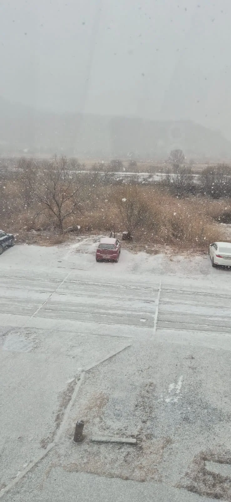 Как и прогнозировалось на сегодня, на юге пошёл снег, местами он усилился.