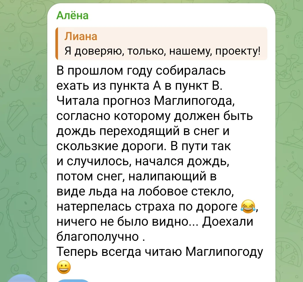 Отправляйте всем, кто хочет присоединиться к проекту Маглипогода и получать самую достоверную информацию о погоде, климате и всего интересного и важного в мире. 👍