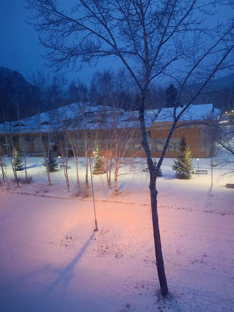 Владимиро-Александровское -2,, ночью пыхнуло снежком, практически не заметно. Уже ясное звёздное небо. Пока тихо, но ждем ветра.