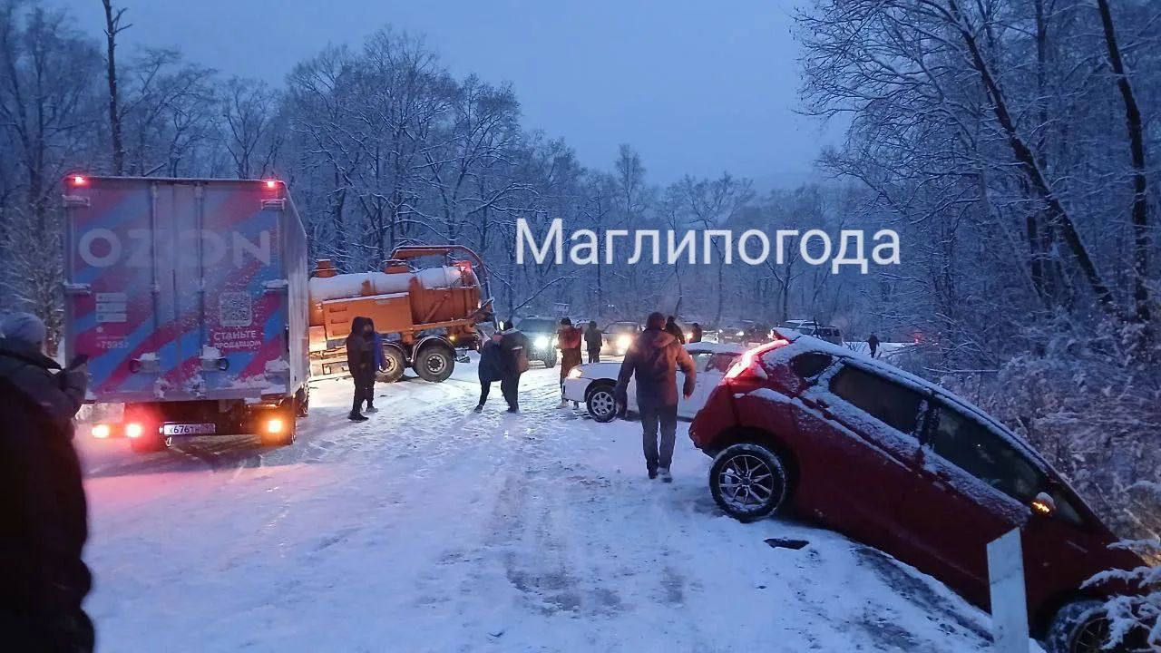 Вот такая погодная обстановка на дороге Партизанск - Шкотово.