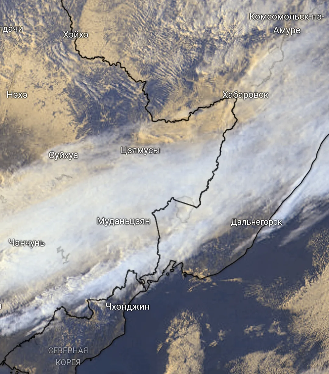 Циклон и его фронт, покинули Приморский край. Прямо сейчас, облаков почти нет - на большей части края чистое небо, кроме северо-востока. ☀️