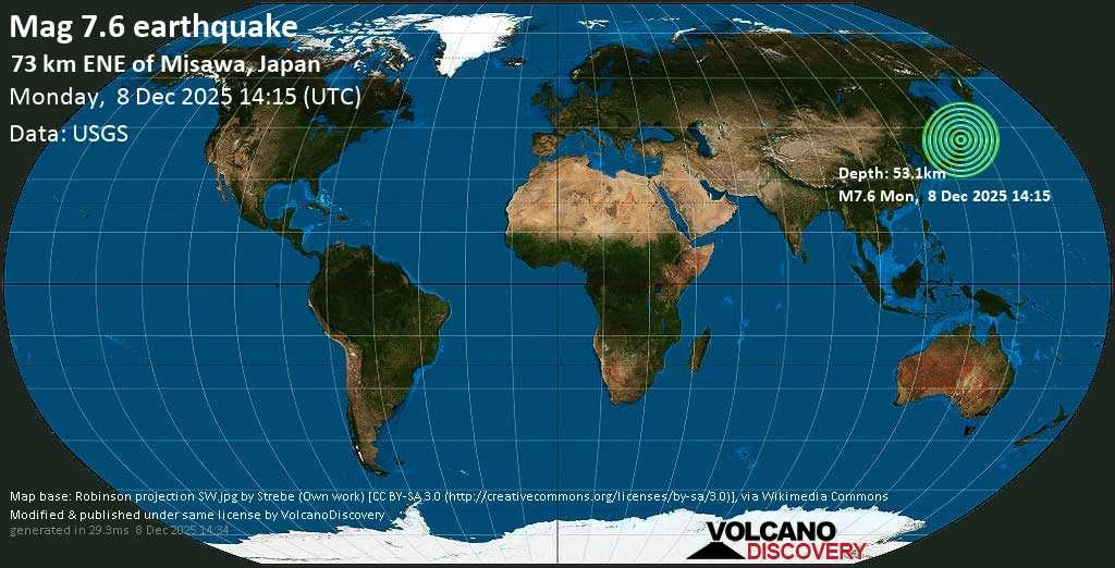 Внимание! 9 декабря в 0:15 в Японии, произошло сильнейшее землетрясение магнитудой примерно от 7,3 до 7,6.⚠️‼️