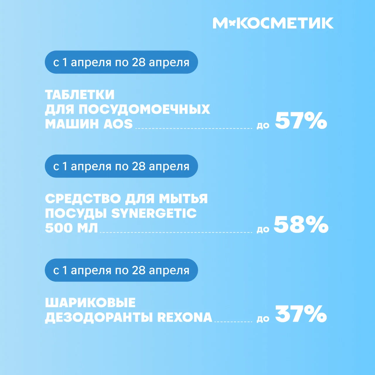 Поэтому не растерялись и объявили в эту субботу скидку 20%* в М.Косметик и М.Кос. Вдруг в нашем списке есть то, что и вы давно хотели себе прикупить.