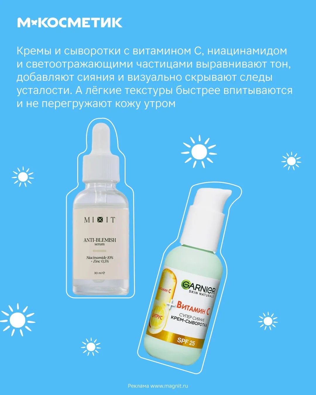Находки из М.Косметик помогут скорректировать следы недосыпа, раннего подъёма и плотного графика.