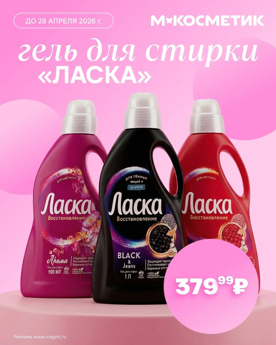 Прямо сейчас гели для стирки «Ласка» из серии «Восстановление» по специальной цене — 379,99 ₽ в магазинах и приложении.