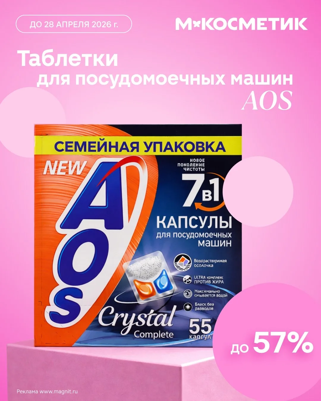 Выбирайте AOS Crystal Complete 7 в 1 со скидкой до 57% в магазинах, а в приложении ещё выгоднее.