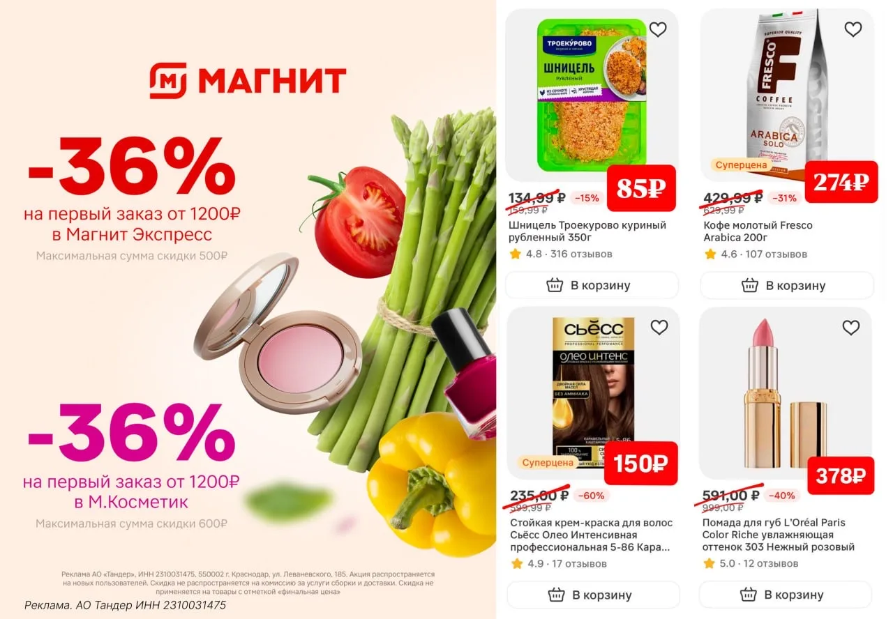 🔺 МАГНИТОВЦЫ — скидка 36% от 1200₽ в Магнит Экспресс (не более 500р)