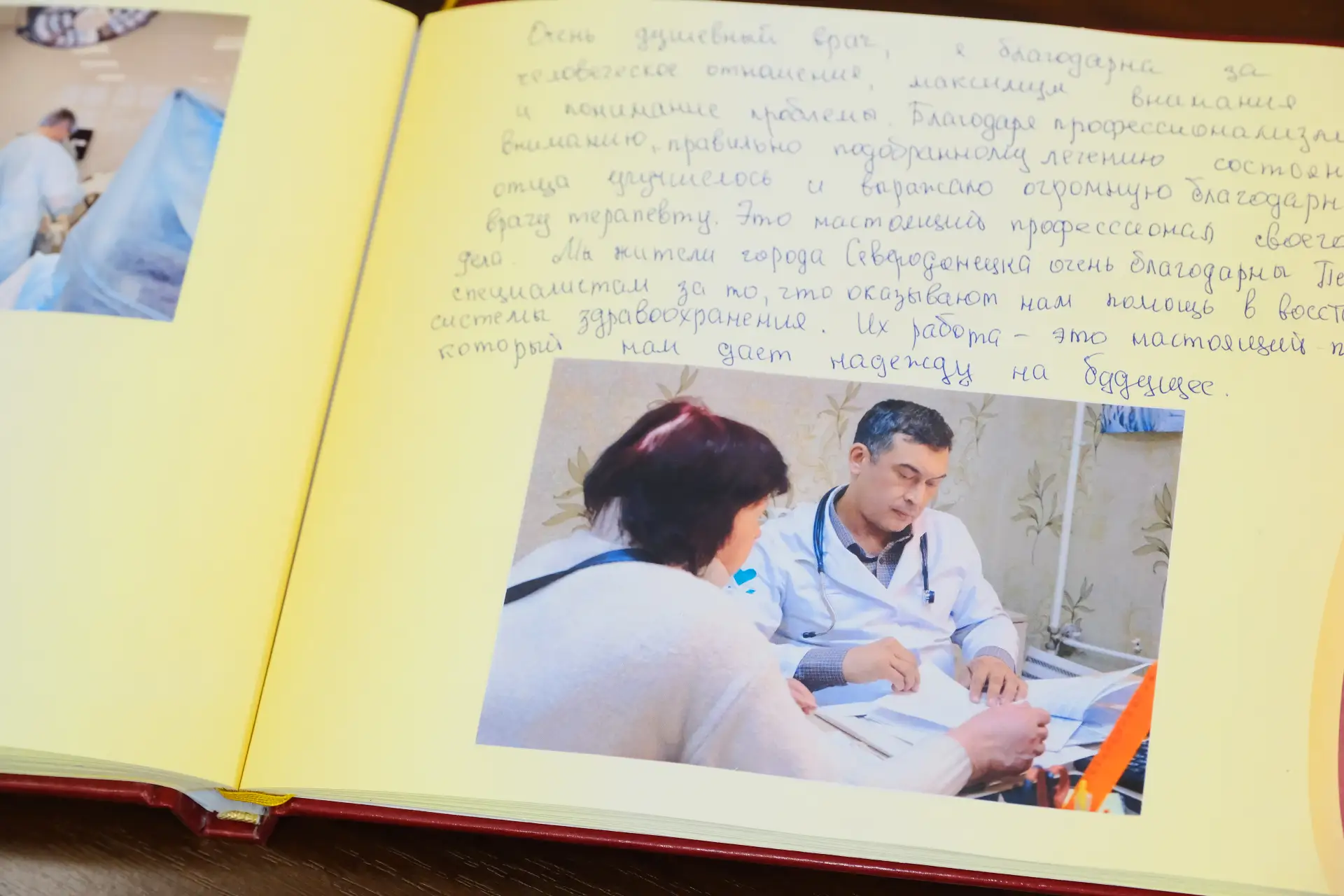 Павел Павлович привез с собой книгу благодарностей. В ней жители Северодонецка говорят спасибо прикамцам. Искренние добрые слова подтверждают, что мы все делаем правильно.