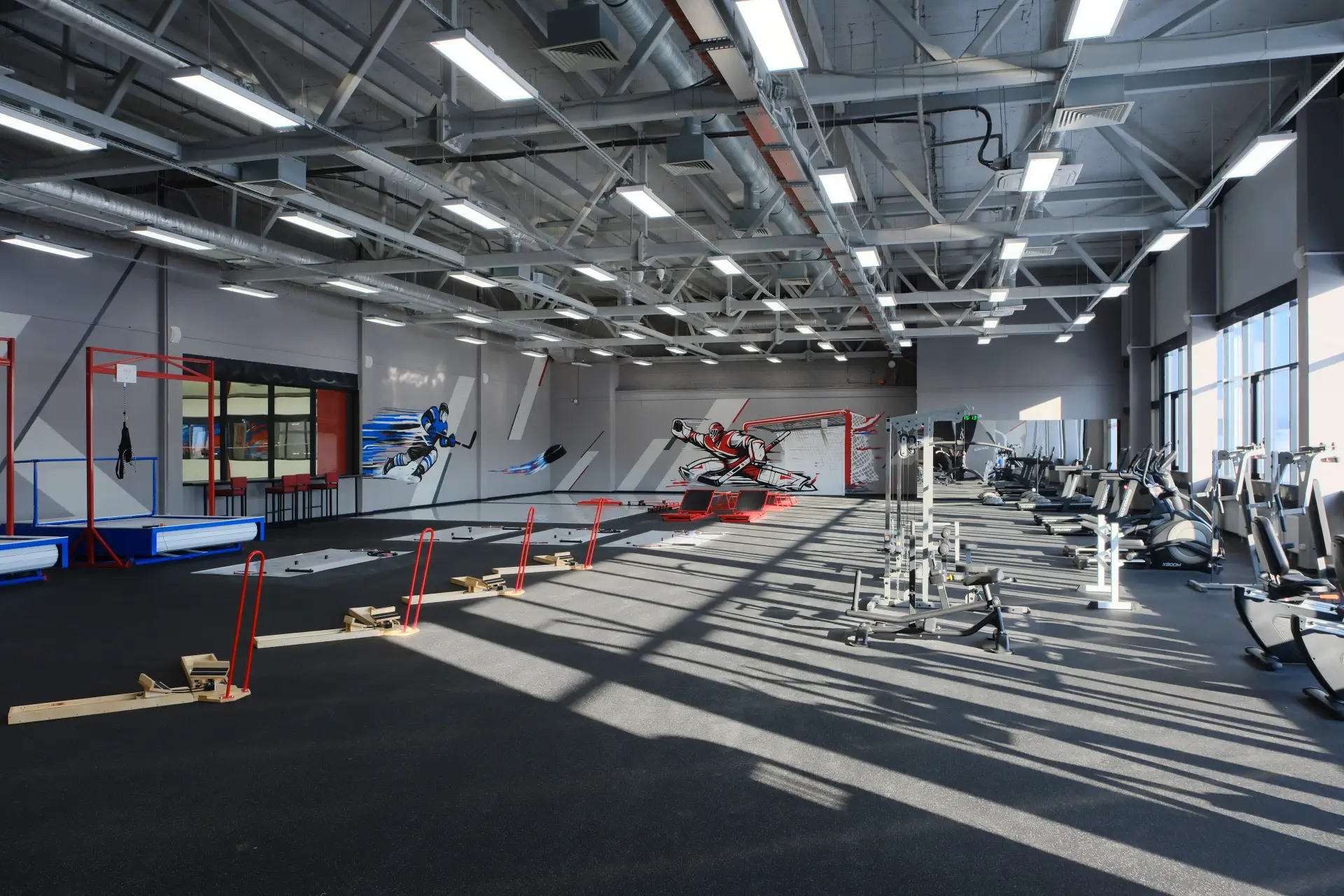 Объект готов на 25%. Здесь установили десятую — самую большую ферму, ее длина 98 метров. Это значит, что смонтирована треть конструкций купола основной арены. Завершается бетонирование каркаса 5 этажа и сборка металлоконструкций кровли, а также бетонирование вертикальных конструкций первого этажа тренировочной арены.