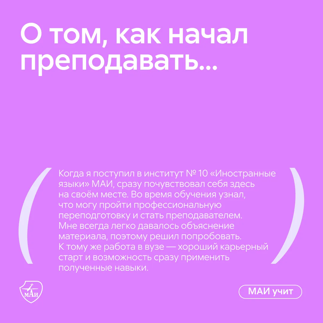 Наш мемолог сказал, что этот пост точно наберёт лайки 👀 А преподаватель института № 10 МАИ Александр Колбасенко — чтобы ты делал домашку по английскому, пока он даёт интервью для рубрики #МАИучит