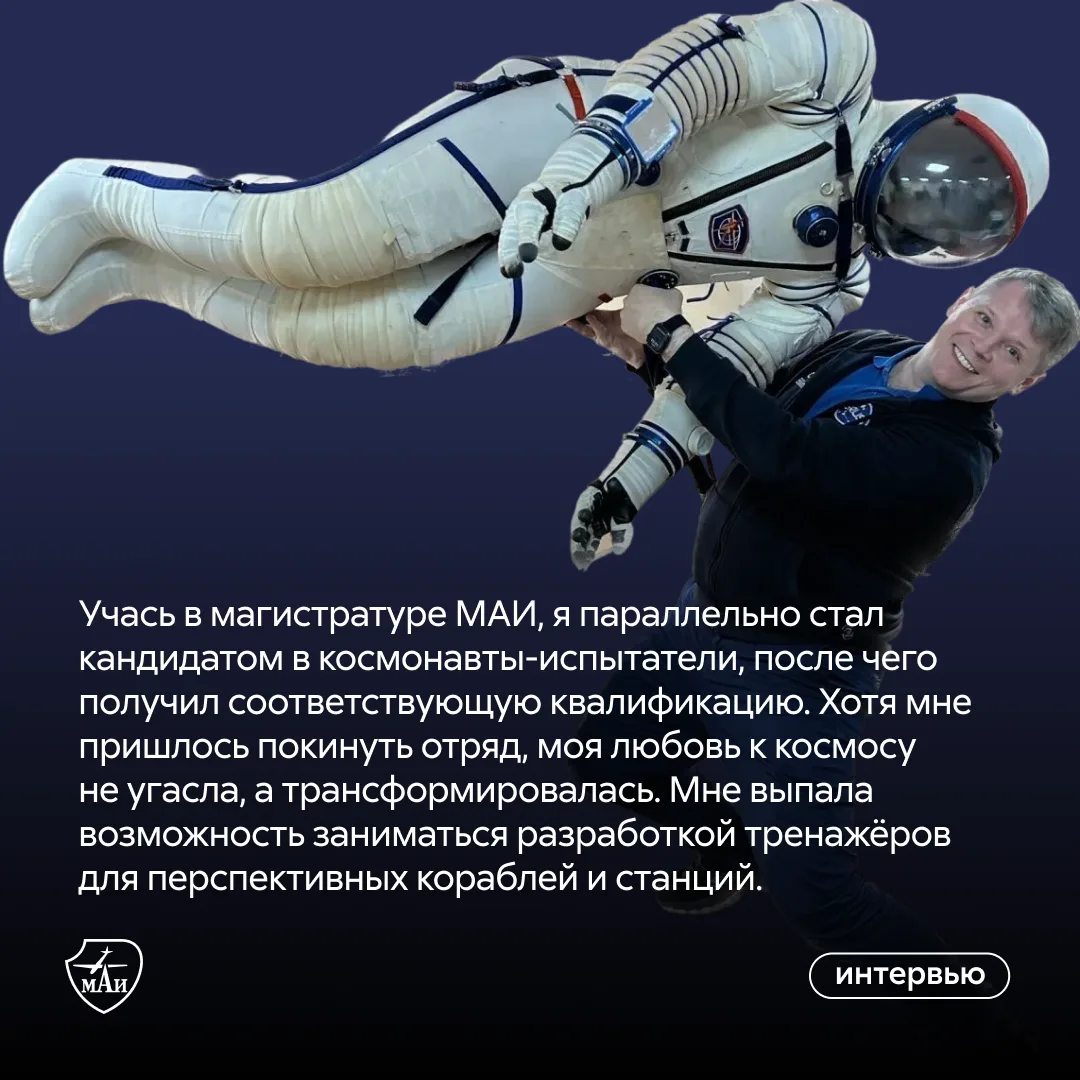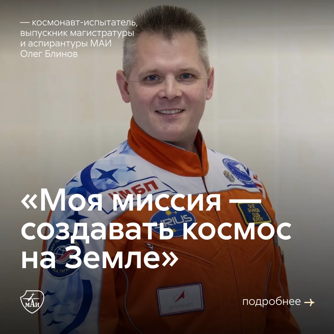 В этом учебном году диплом об окончании аспирантуры в МАИ получил космонавт-испытатель Олег Блинов. Его профессия и научные интересы связаны с созданием тренажёров для отработки будущих космических миссий.