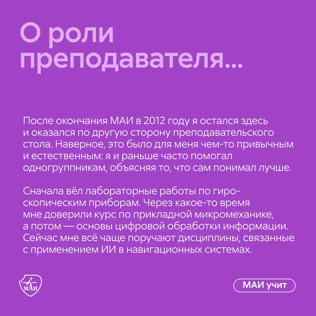 Его путь в МАИ начался в 2005 году — с учёбы в институте № 3. А спустя 20 лет он сам стал руководителем одного из подразделений университета 👨🎓