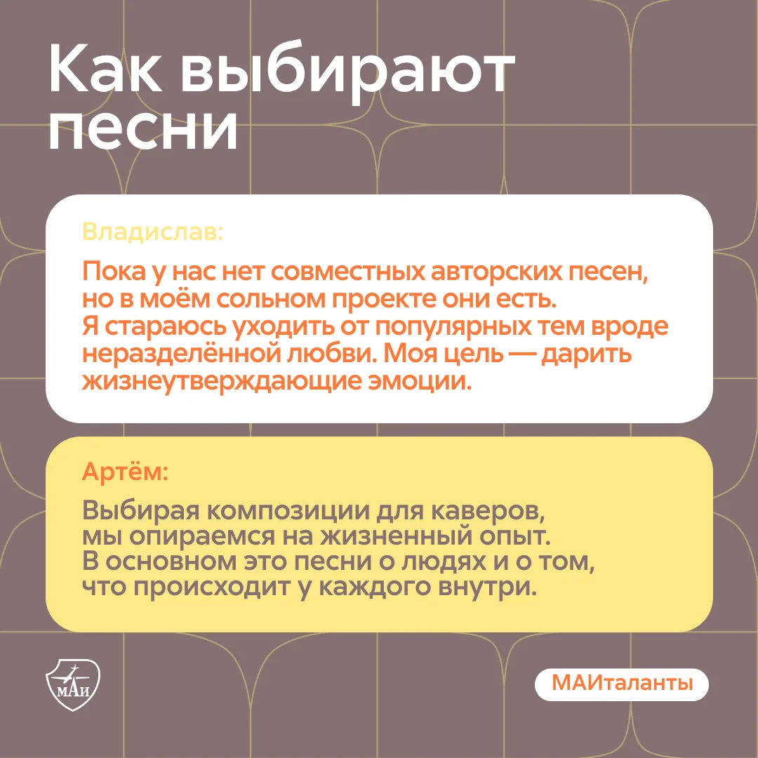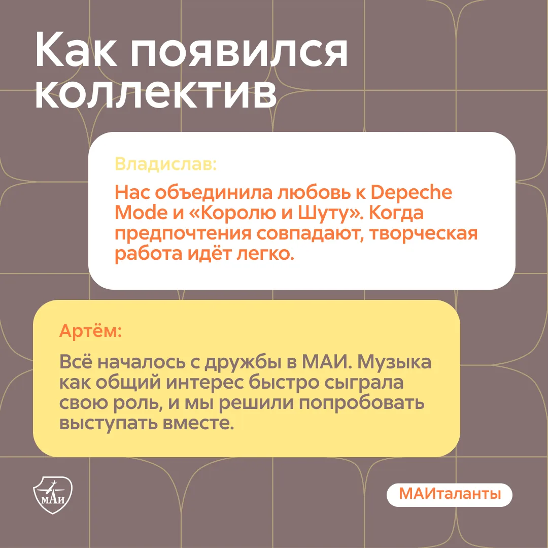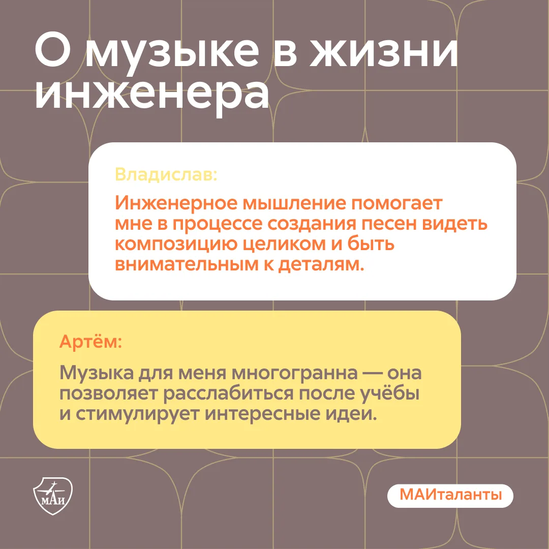 Инженерия и творчество для них — не параллельные вселенные, а дополняющие друг друга. Артёму музыка помогает искать новые идеи, а Владиславу — структурировать процесс работы над авторскими песнями.