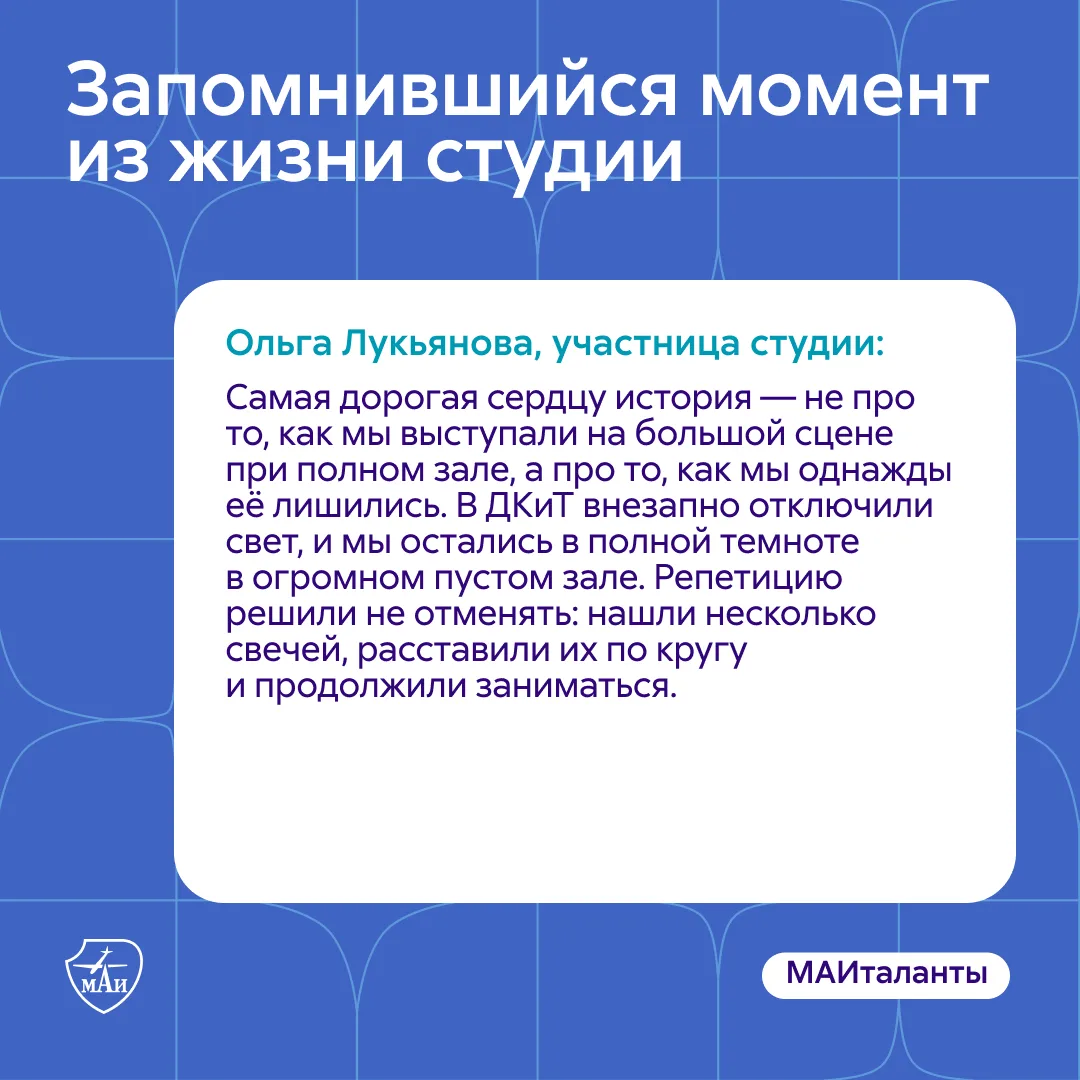 О том, как рождается искусство в «Соколе», рассказала в интервью участница студии и студентка института № 3 МАИ Ольга Лукьянова.