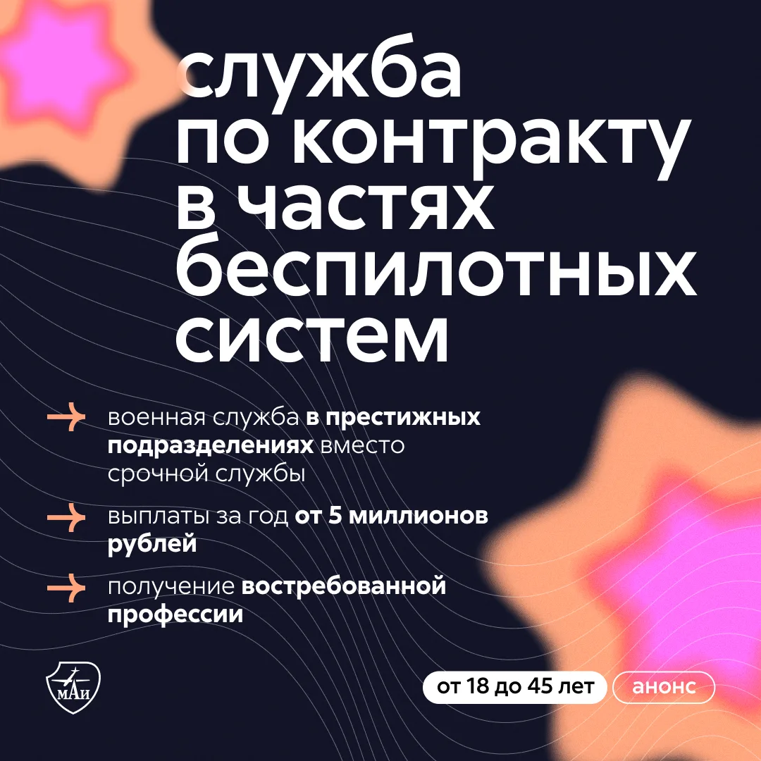 Какие выплаты и льготы положены военнослужащим беспилотных войск и как поставить на паузу карьеру или учебную деятельность, если вы сотрудник или студент Московского авиационного, расскажут в аудитории № 8 ГУКа или по телефону: +7 499 158-49-77.