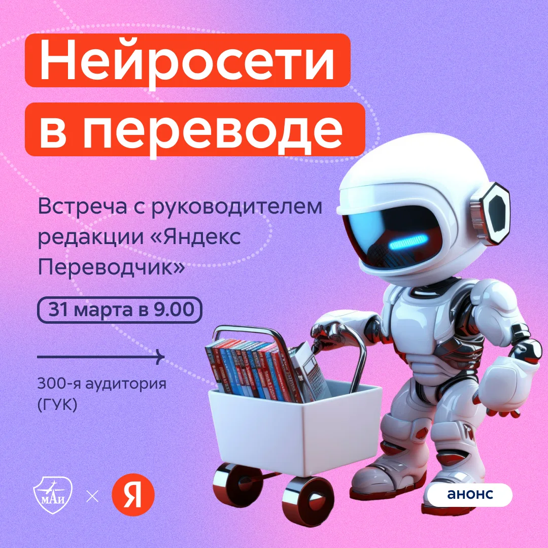 Что из этого правда, а что — преувеличение, спросим завтра у руководителя редакции «Яндекс Переводчик» Яны Матросовой. Диалог о том, какое место нейросети уже занимают в её работе, начнётся с 9:00 в 300-й аудитории ГУКа.