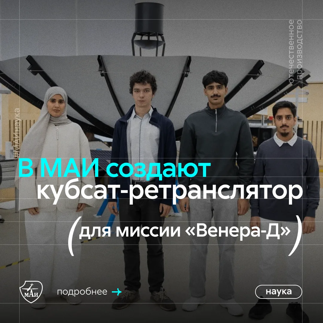 В МАИ разрабатывают кубсат‑ретранслятор, который поможет повысить эффективность российской миссии по исследованию Венеры — «Венера‑Д». Его основная задача — перенаправлять на Землю фотографии, телеметрию, а также иные научные данные с аэростатов и других аппаратов, которые будут находиться на планете.
