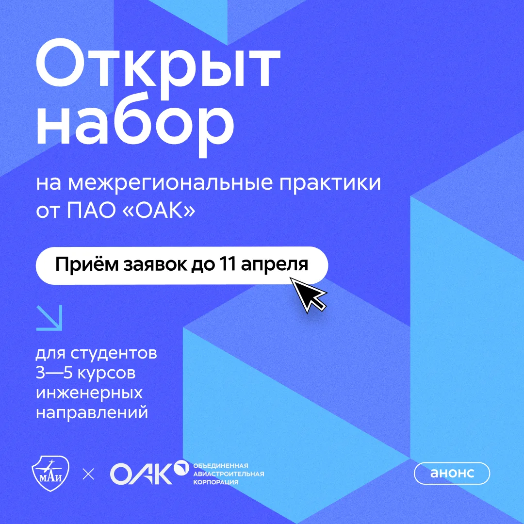 ПАО «ОАК» открывает набор на межрегиональные практики.