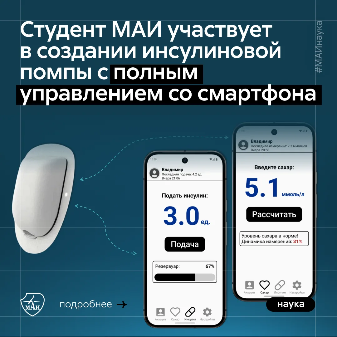 Решение для медицины, не имеющее полных аналогов на отечественном рынке, помогает создавать студент института № 3 МАИ 💪 В команде с учащимися РУДН и практикующим врачом-эндокринологом Иван Анисимов участвует в разработке беспроводной полностью управляемой со смартфона инсулиновой помпы.