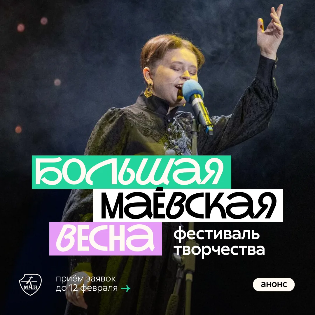 Ждём твою заявку на «Большую маёвскую весну» — отборочный внутривузовский этап «Московской студенческой весны». Круто выступишь на сцене университета — получишь шанс представлять МАИ на масштабном городском фестивале творчества. А там и до более крупных площадок недалеко 😉