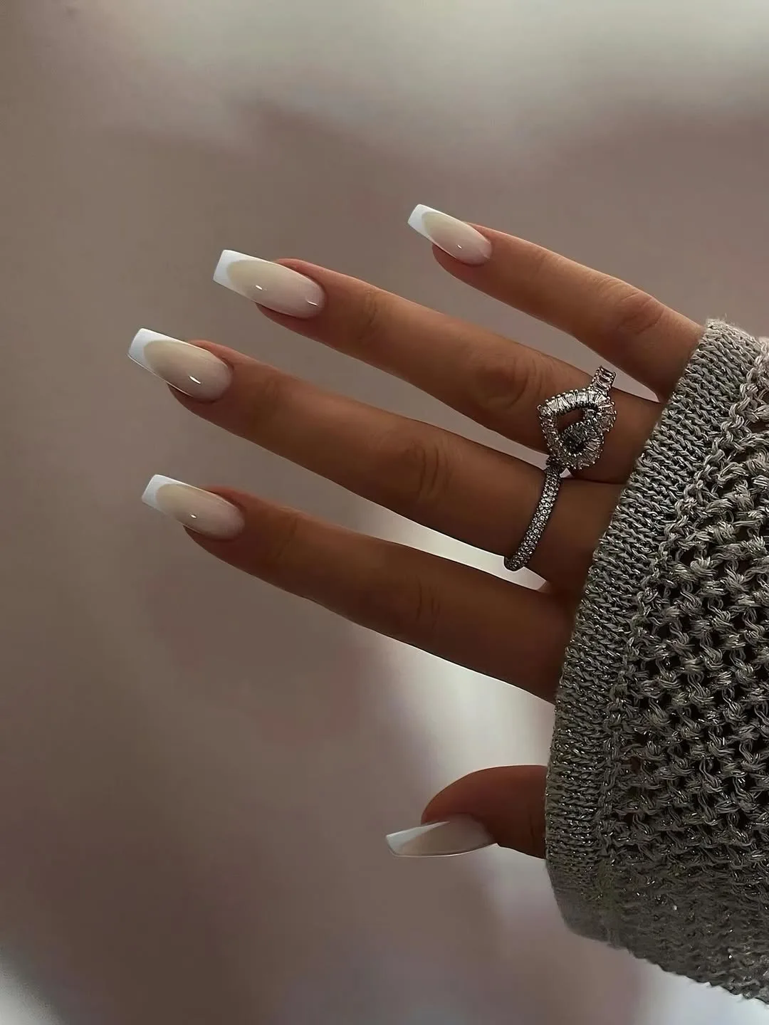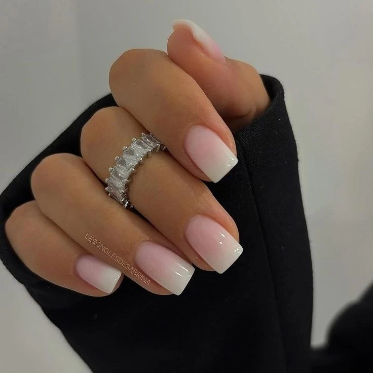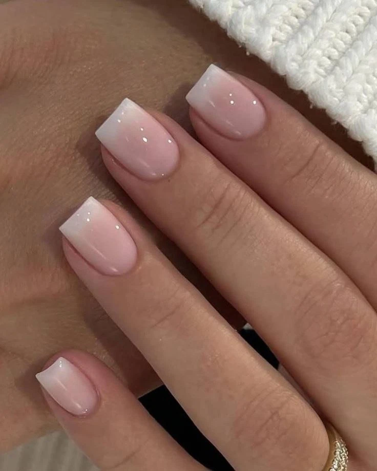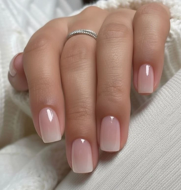 💡 Бэби-бумер»— это разновидность французского маникюра, в которой чёткой белой линии нет — оттенки плавно перетекают друг в друга, создавая естественный градиент от розоватого или бежевого основания к молочно-белому краю.