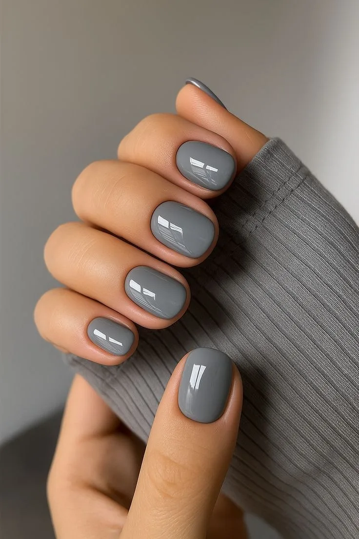 Серый "кошачий глаз" на ногтях 🩶