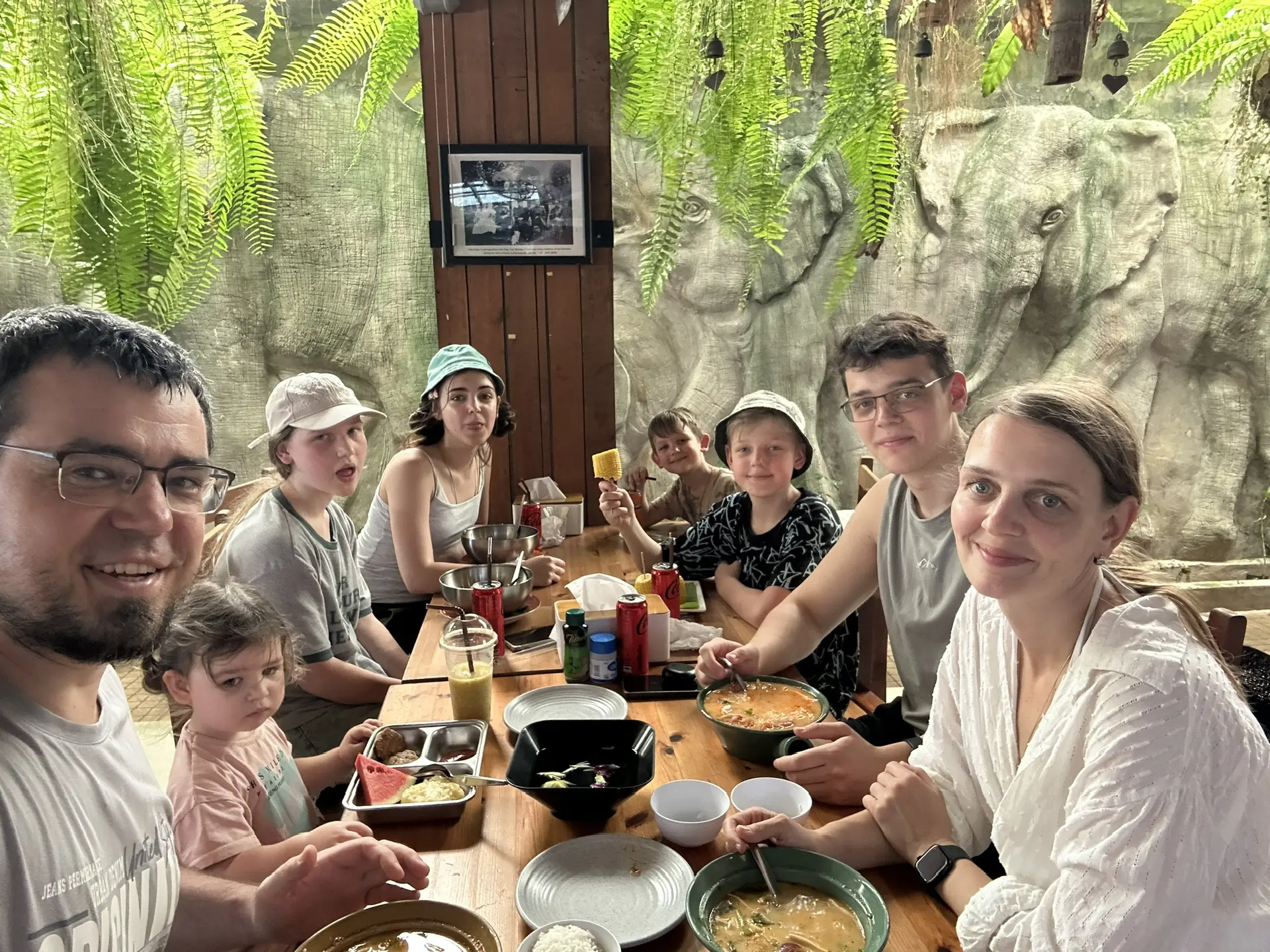 Тайки очень удивляются, когда понимают, что это все наши дети. Они переспрашивают и уточняют, точно ли они нас поняли. Мы просто ходим толпой везде и если подходим к местному ларьку, создаем сразу ажиотаж🤣. Все думают, что раз толпа, значит манго тут дешевле и встают за нами в очередь🤣.